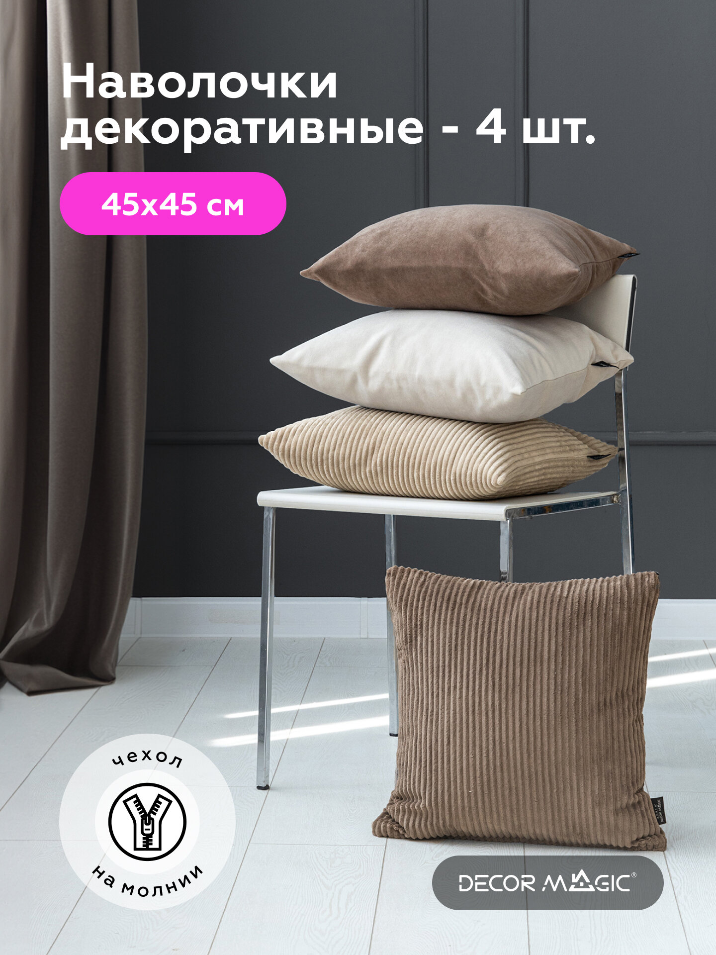 Наволочки декоративные на подушки 45х45 MEMORY/OASIS/VEGA 4 шт, на молнии, велюр