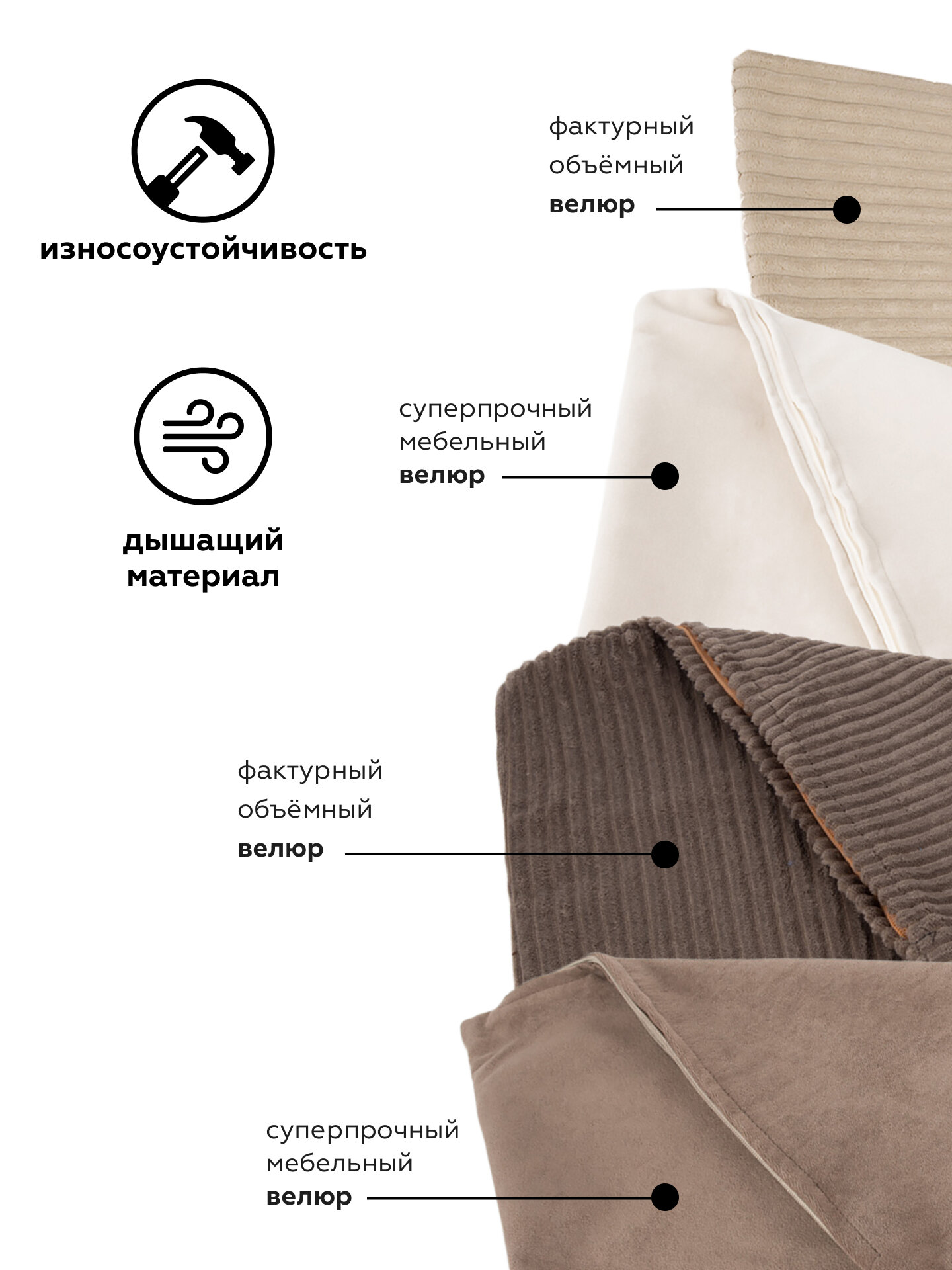Комплект чехлов для подушек 45х45 EXTRA на молнии, велюр 4 шт