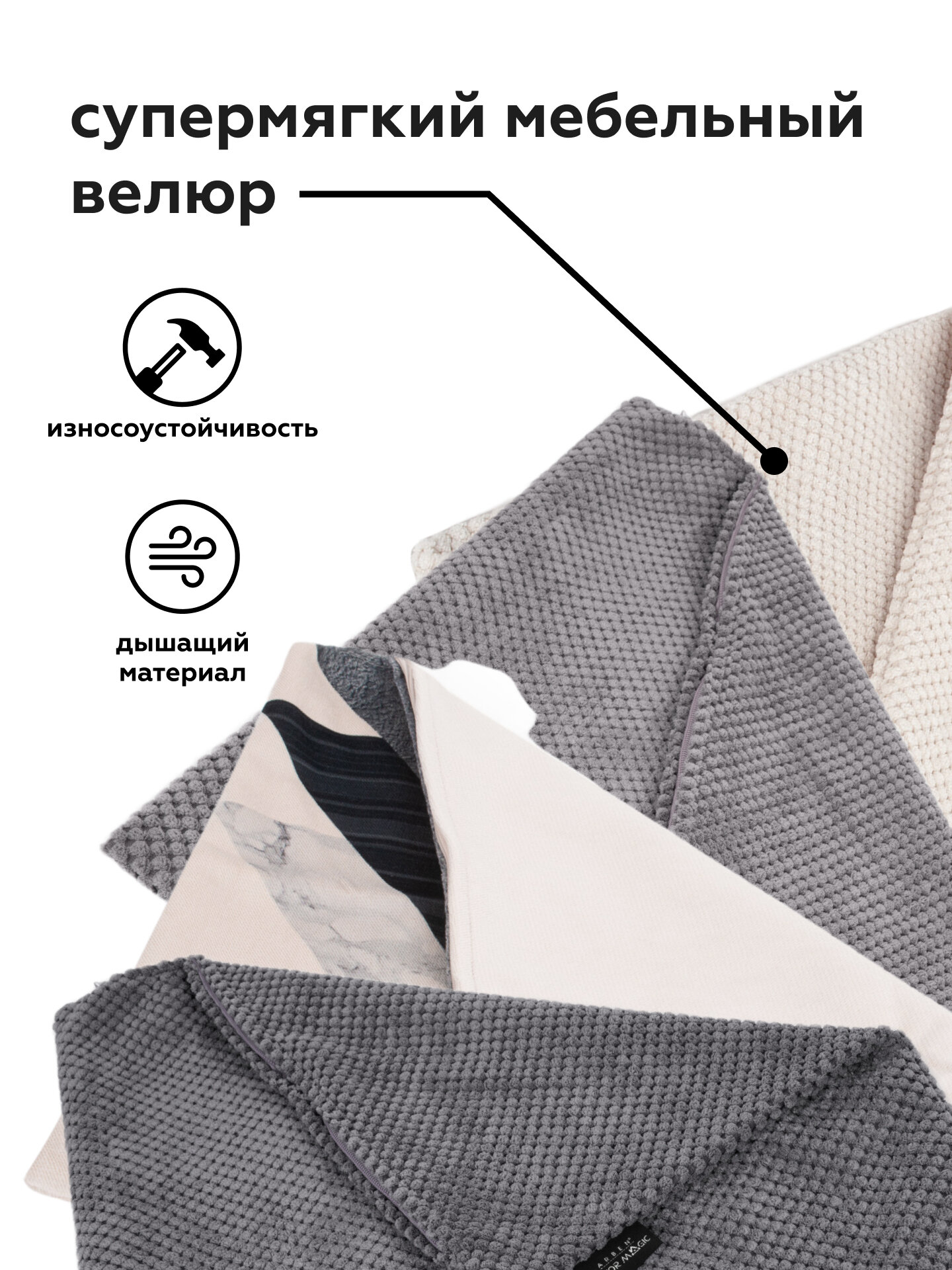 Наволочки декоративные на подушки 45х45 MEMORY/OASIS/VEGA 4 шт, на молнии, велюр