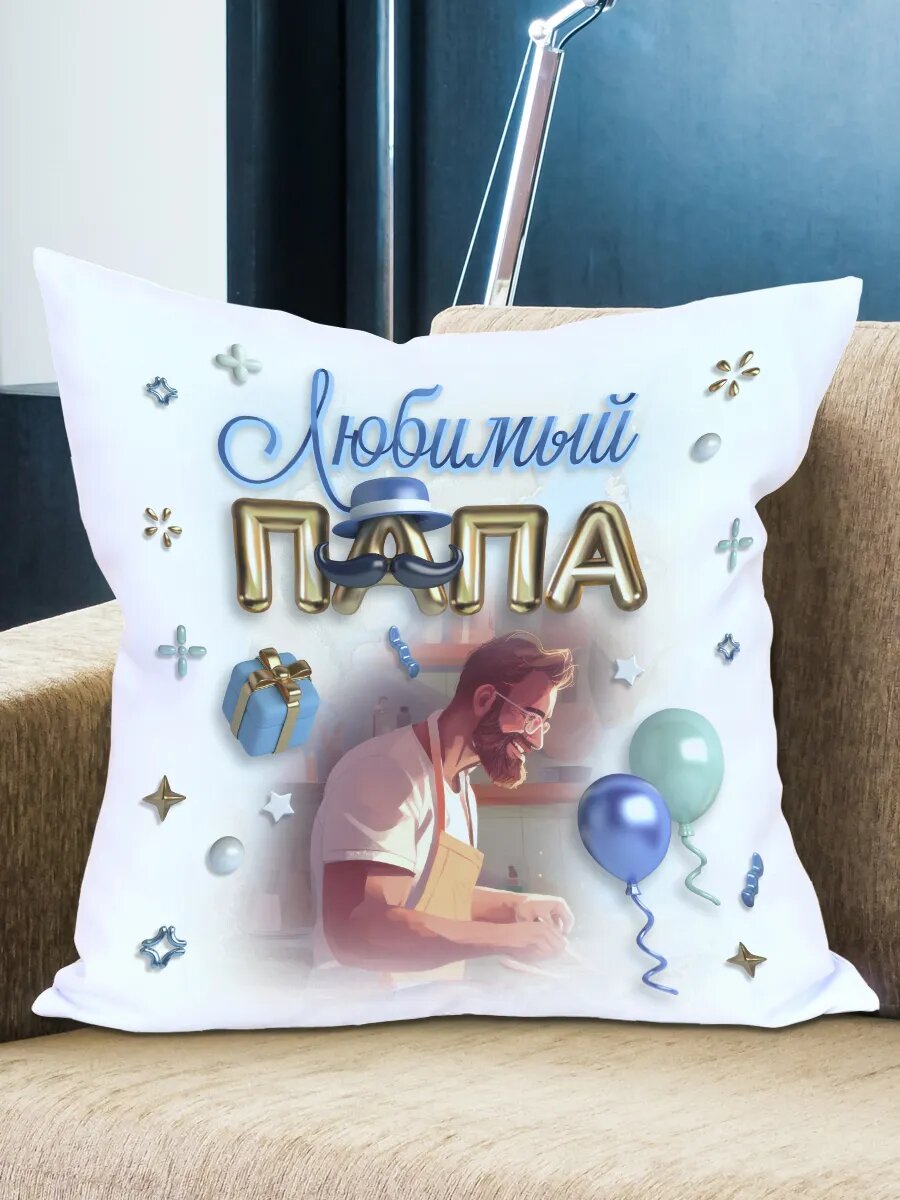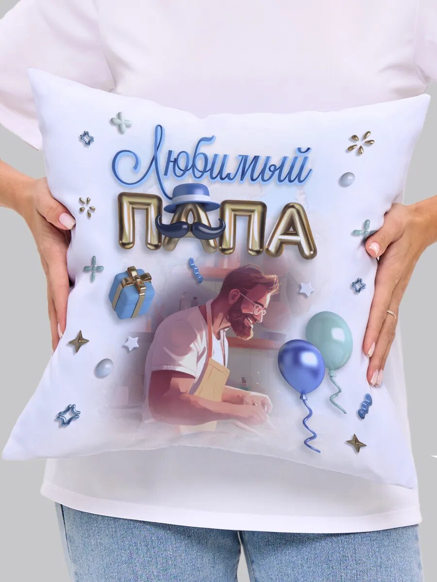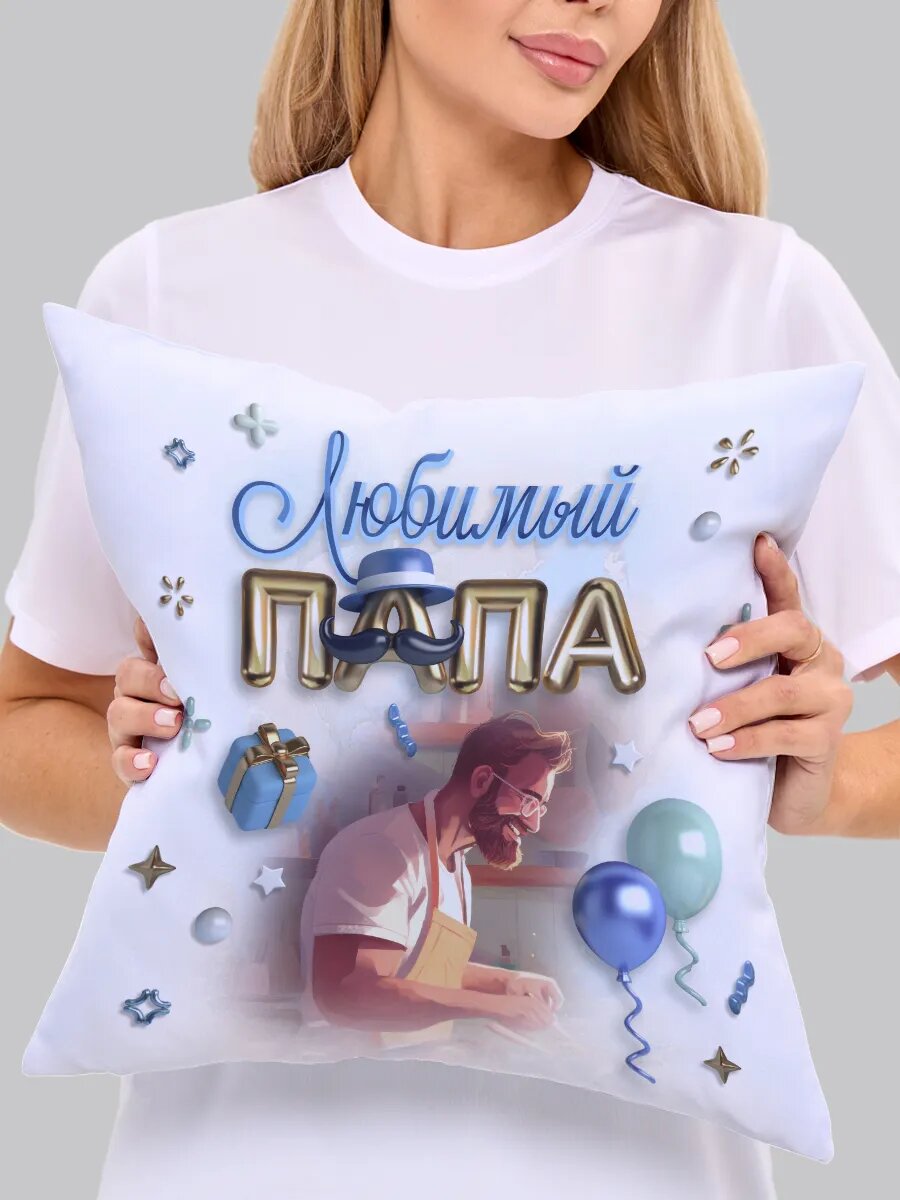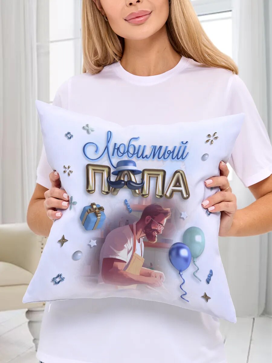 Декоративная подушка Филя "Любимый папа", 40x40 см, 1 шт, с рисунком, двухсторонняя, цветная интересное: