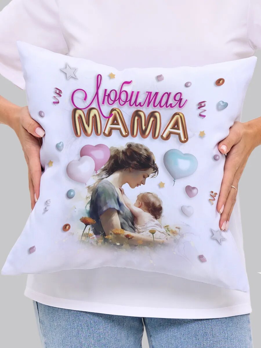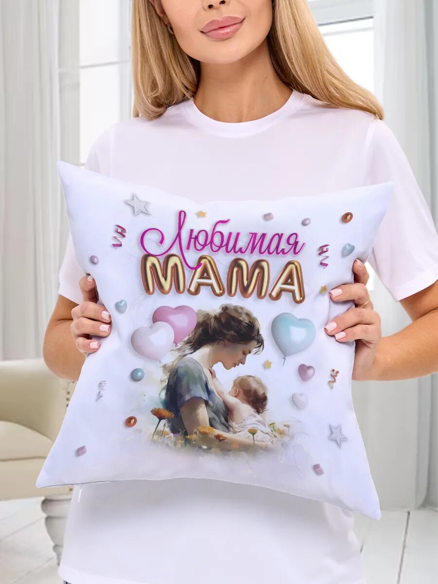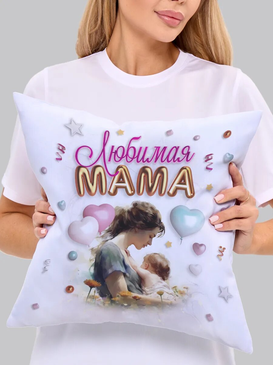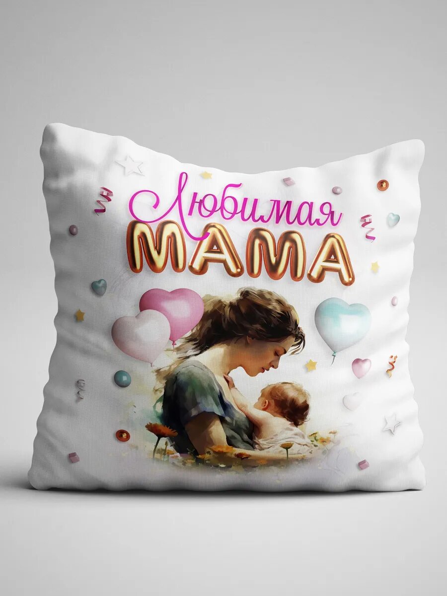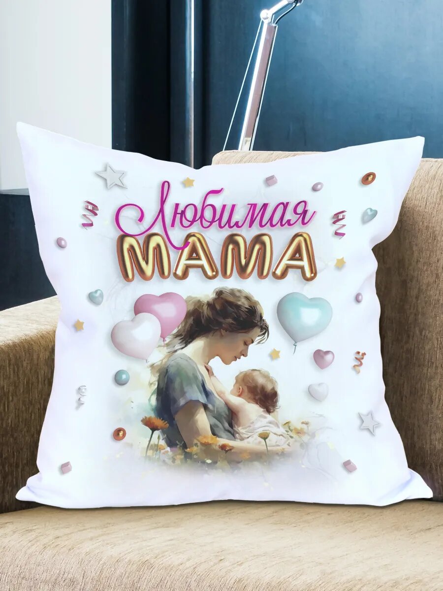 Декоративная подушка Филя "Любимая мама", 40x40 см, 1 шт, с рисунком, двухсторонняя, цветная интересное: