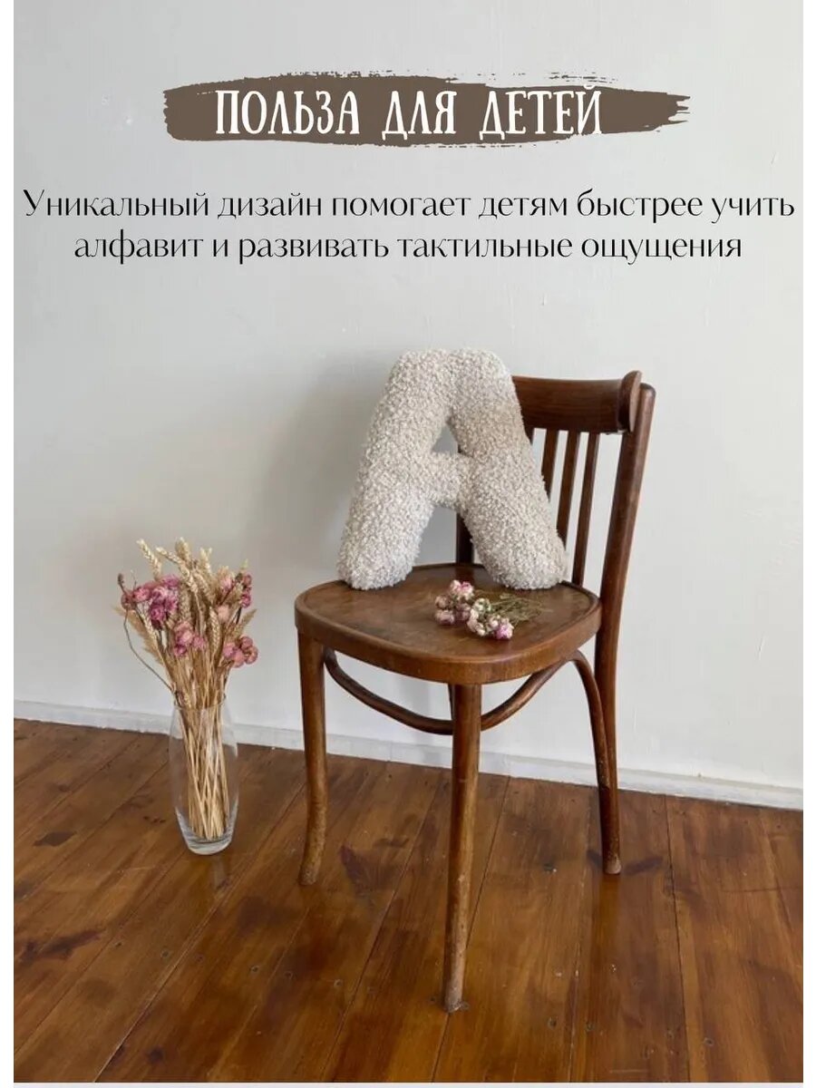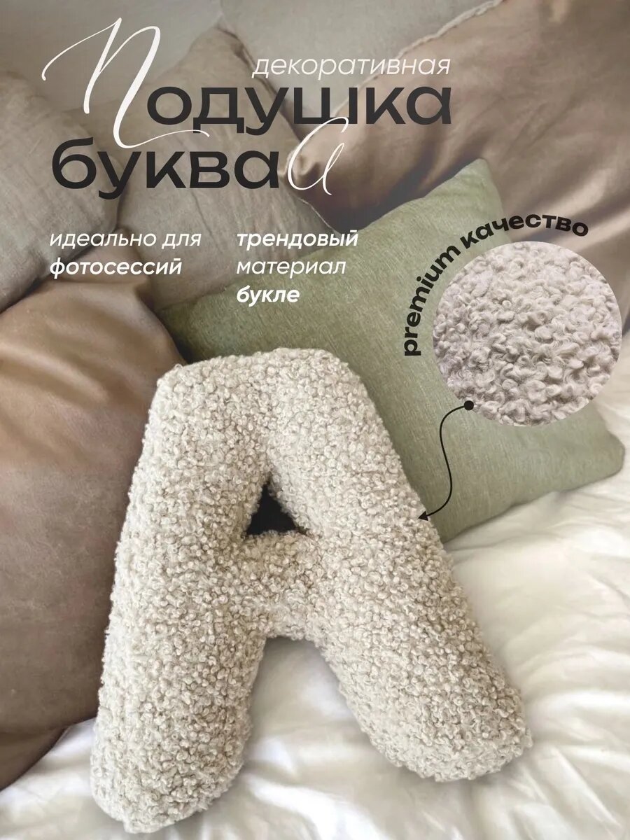 Декоративная подушка Naplecho "Буква А", для детей, фигурная, бежевая, 38 см x 36 см интересное: