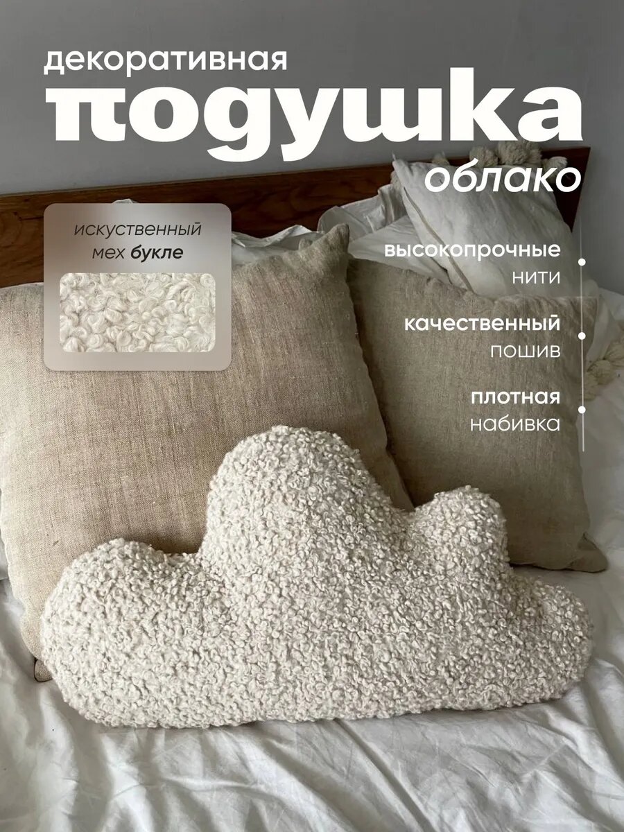 Декоративная подушка Naplecho "Облако", букле, антистрессовая, гипоаллергенная интересное: