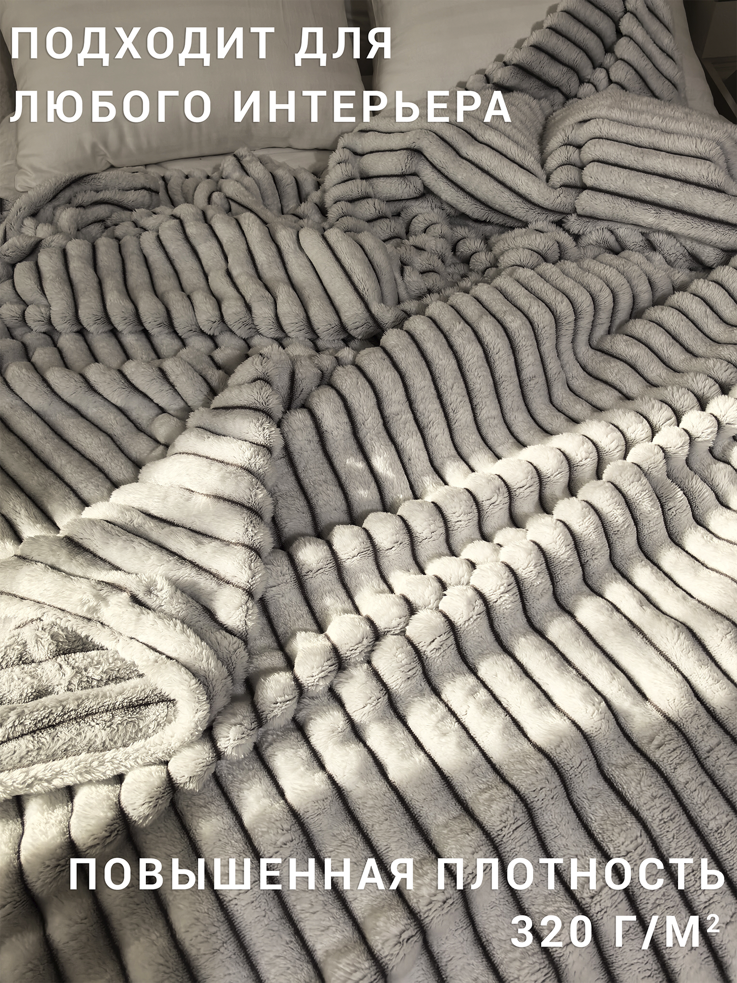 Плед-покрывало "серые косы" евро, 200х220 см, велсофт 100% плотность 320 г/кв. м.