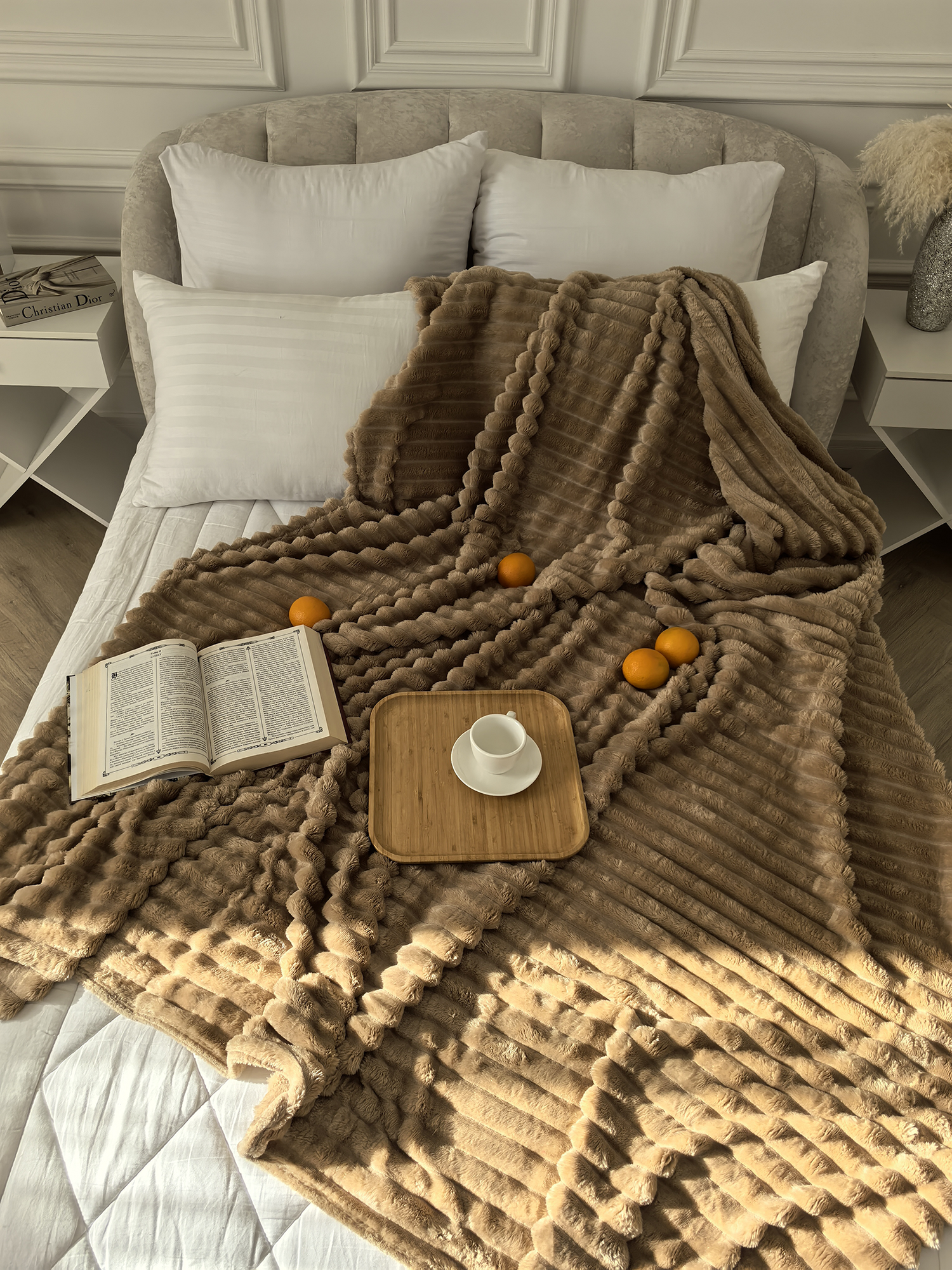 Плед-покрывало "темный шоколад" евро, 200х220 см, велсофт 100% плотность 320 г/кв. м.