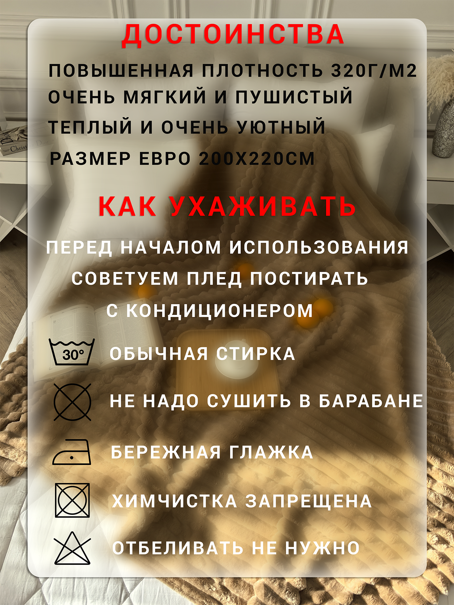 СохранитьПлед-покрывало "песочный" евро, 200х220 см, велсофт 100% плотность 320 г/кв. м. интересное: