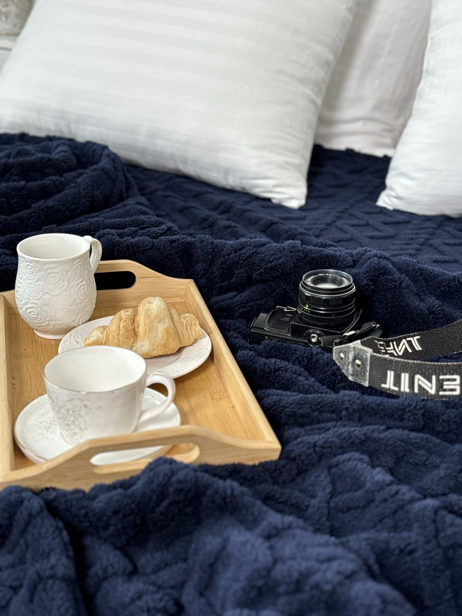 Купить Плед-покрывало "синие косы" евро, 200х220 см, велсофт 100% плотность 320 г/кв. м.