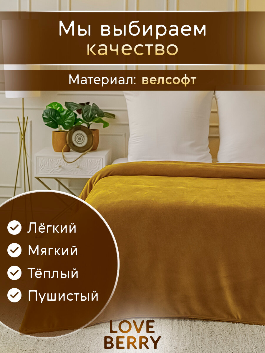 СохранитьПлед 200х220 см LOVEBERRY однотонный из велсофта, золотая пальма, подарок маме интересное: