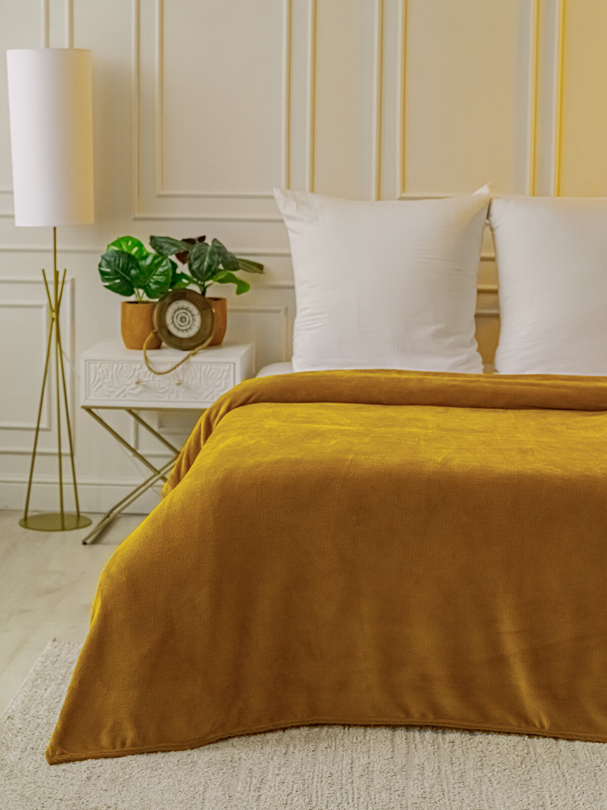 Купить Плед 150х200 см LOVEBERRY из велсофта, однотонный, золотая пальма, подарок маме