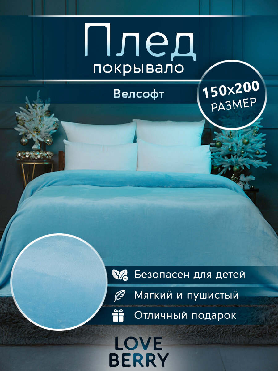 Купить Плед LoveBerry Basic, 150x200см, 1,5-спальный, голубой, из велсофта
