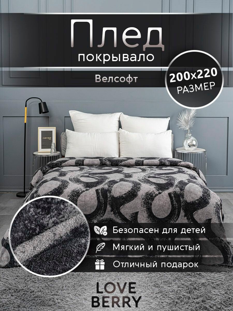 Купить Плед и покрывало 200х 220 LOVEBERRY на кровать, для пикника, Евро, из велсофта
