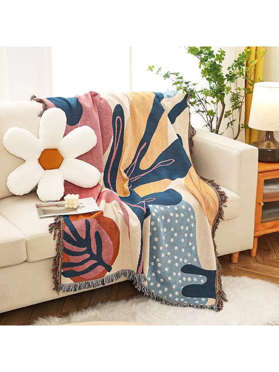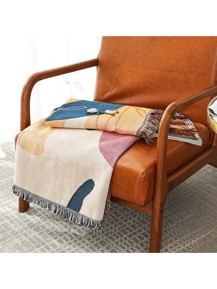 Плед "Абстракция", гобелен, 130x160см, машинное плетение, бахрома интересное: