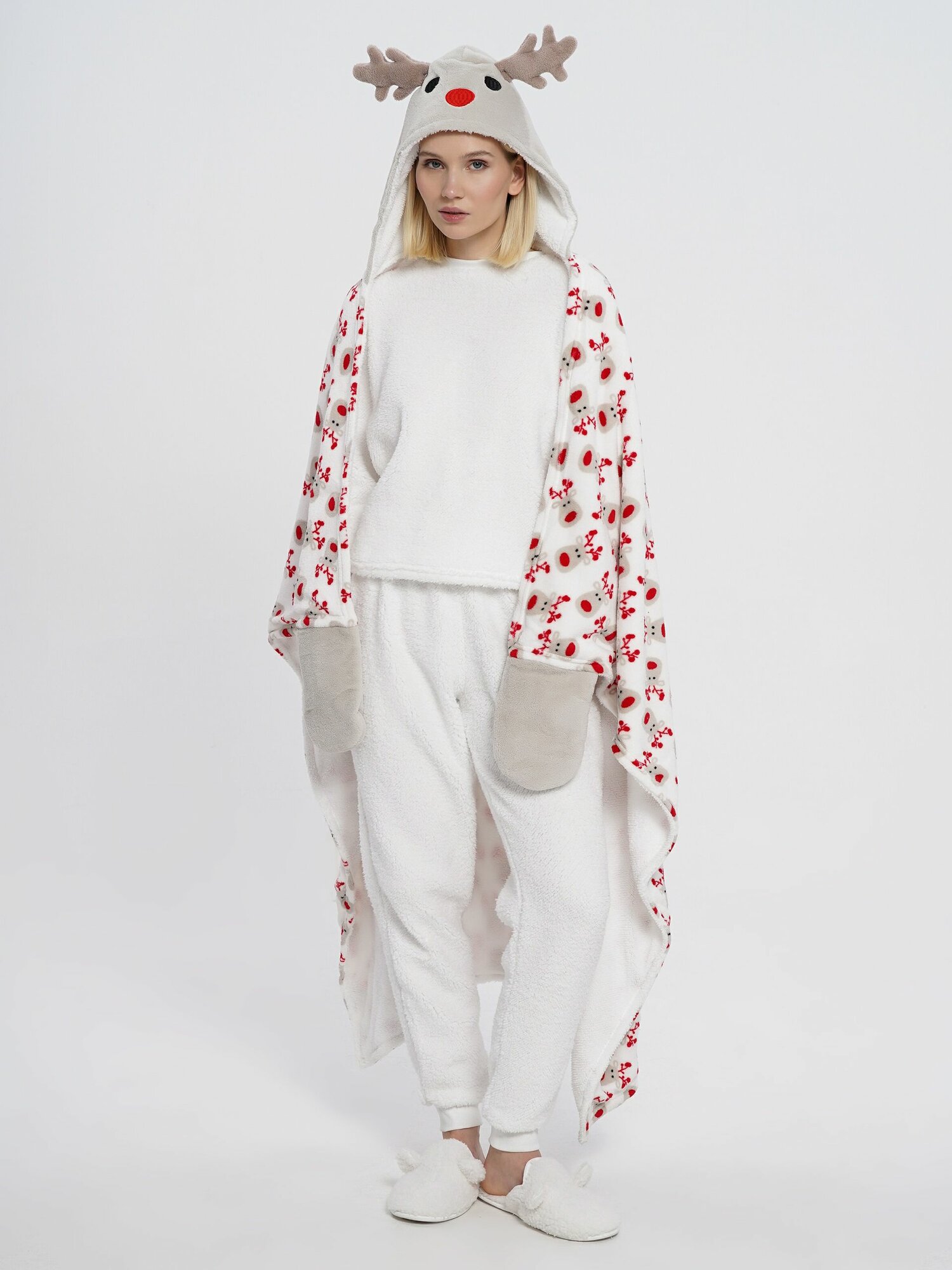 Купить Махровое покрывало олень с капюшоном варежками
