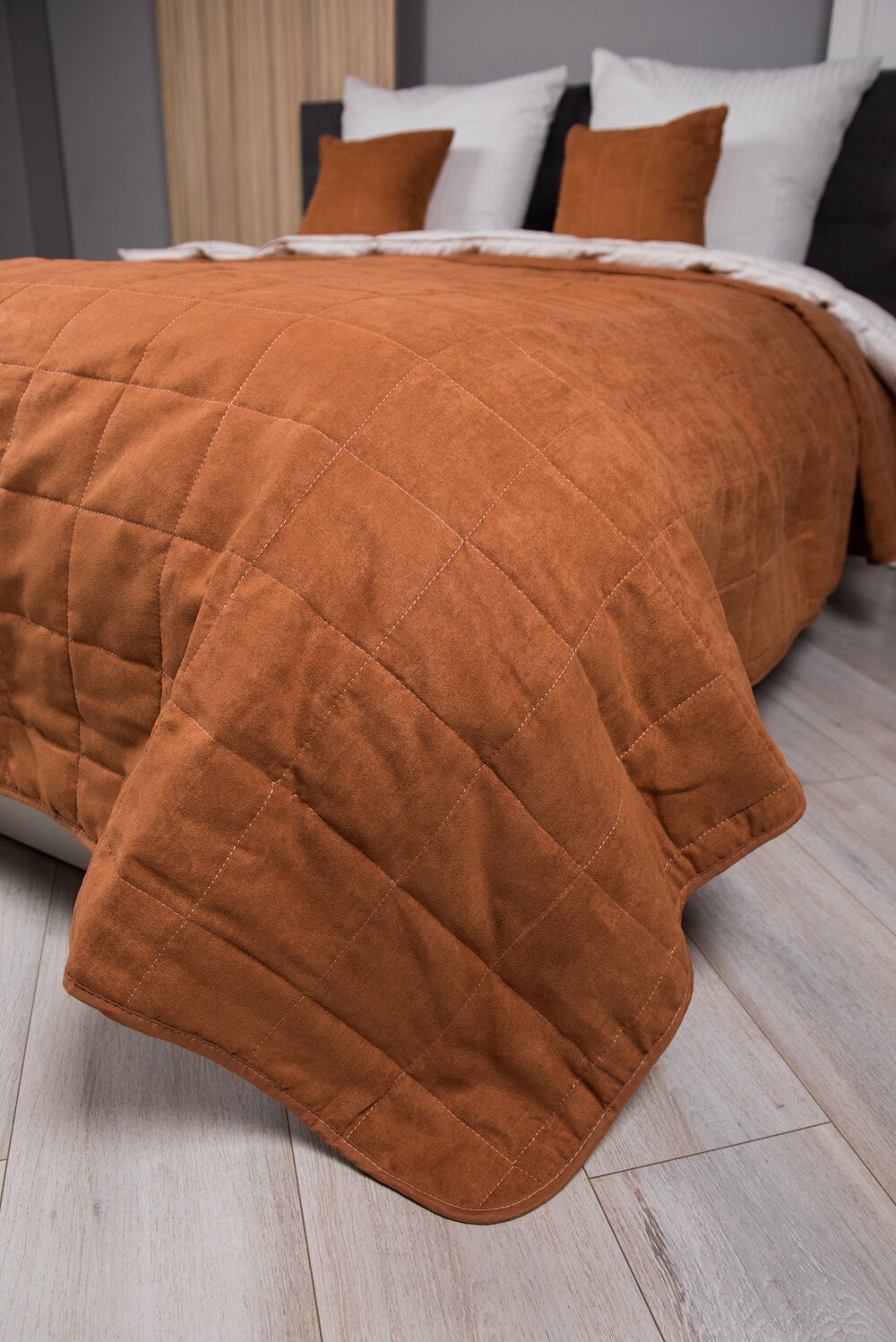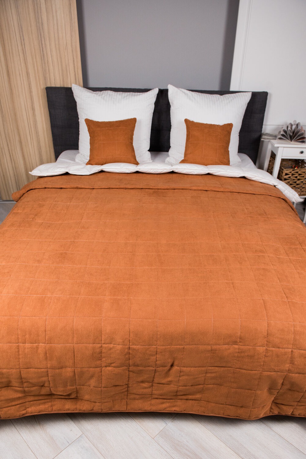 Купить Комплект покрывало 220х240 с 2-мя наволочками 40х40 на молнии, замша терракотовый