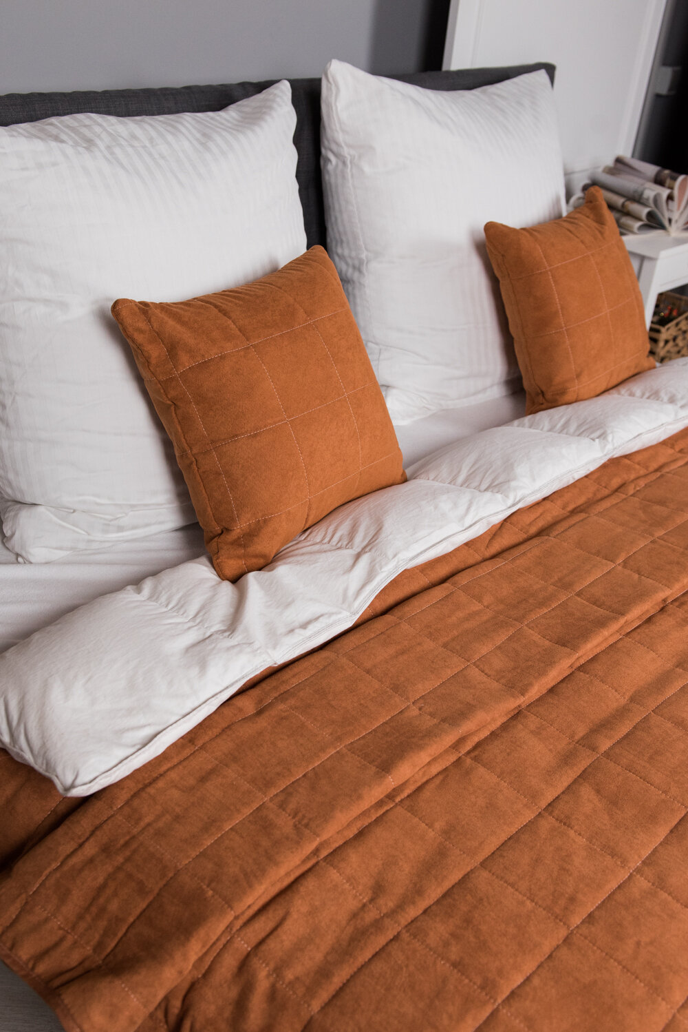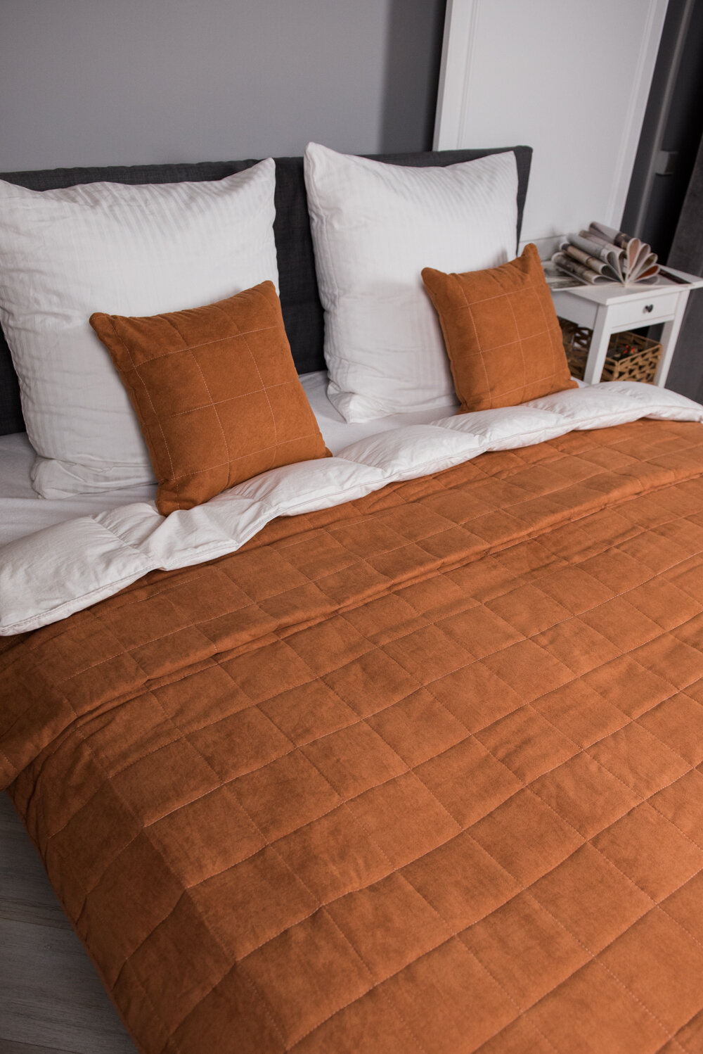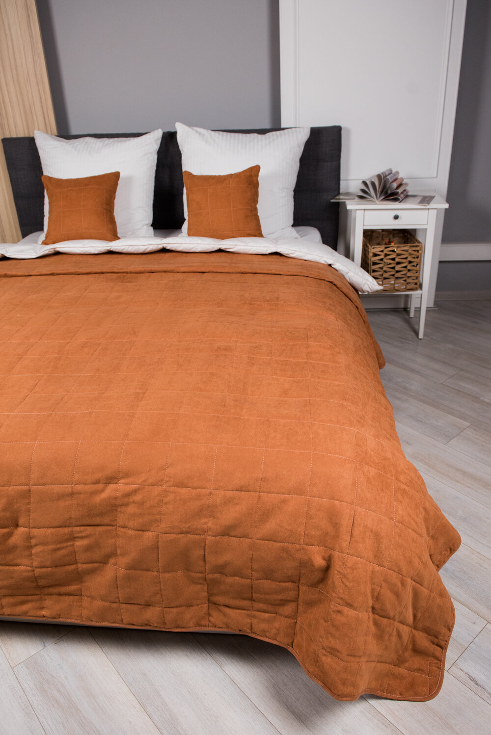 Комплект покрывало 220х240 с 2-мя наволочками 40х40 на молнии, замша терракотовый интересное: