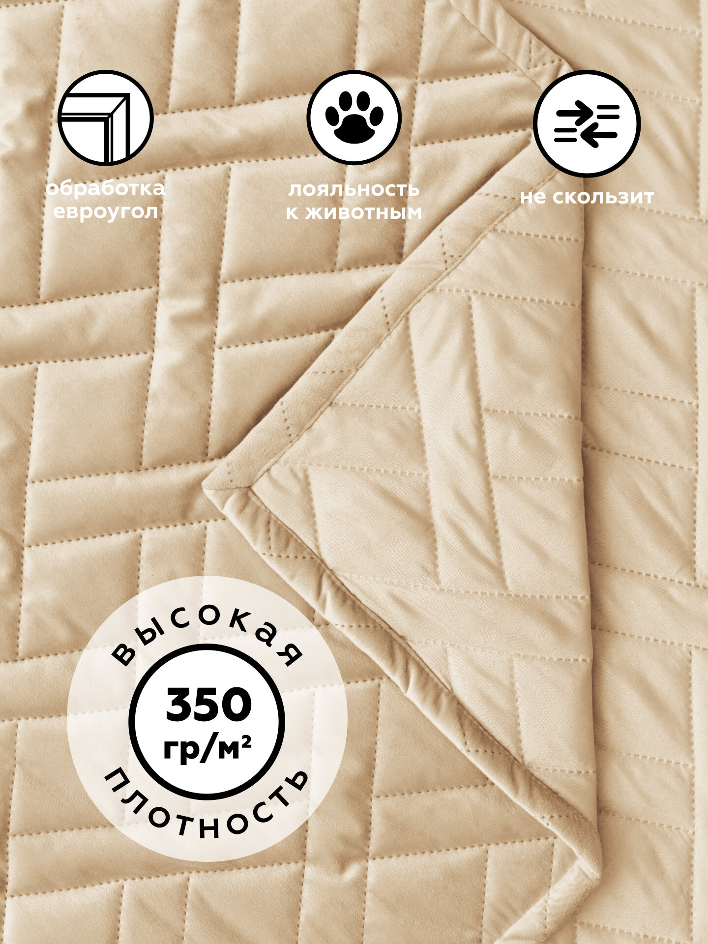 Покрывало на диван 135x230 см, стеганое, велюр MONO ADRIA BEIGE
