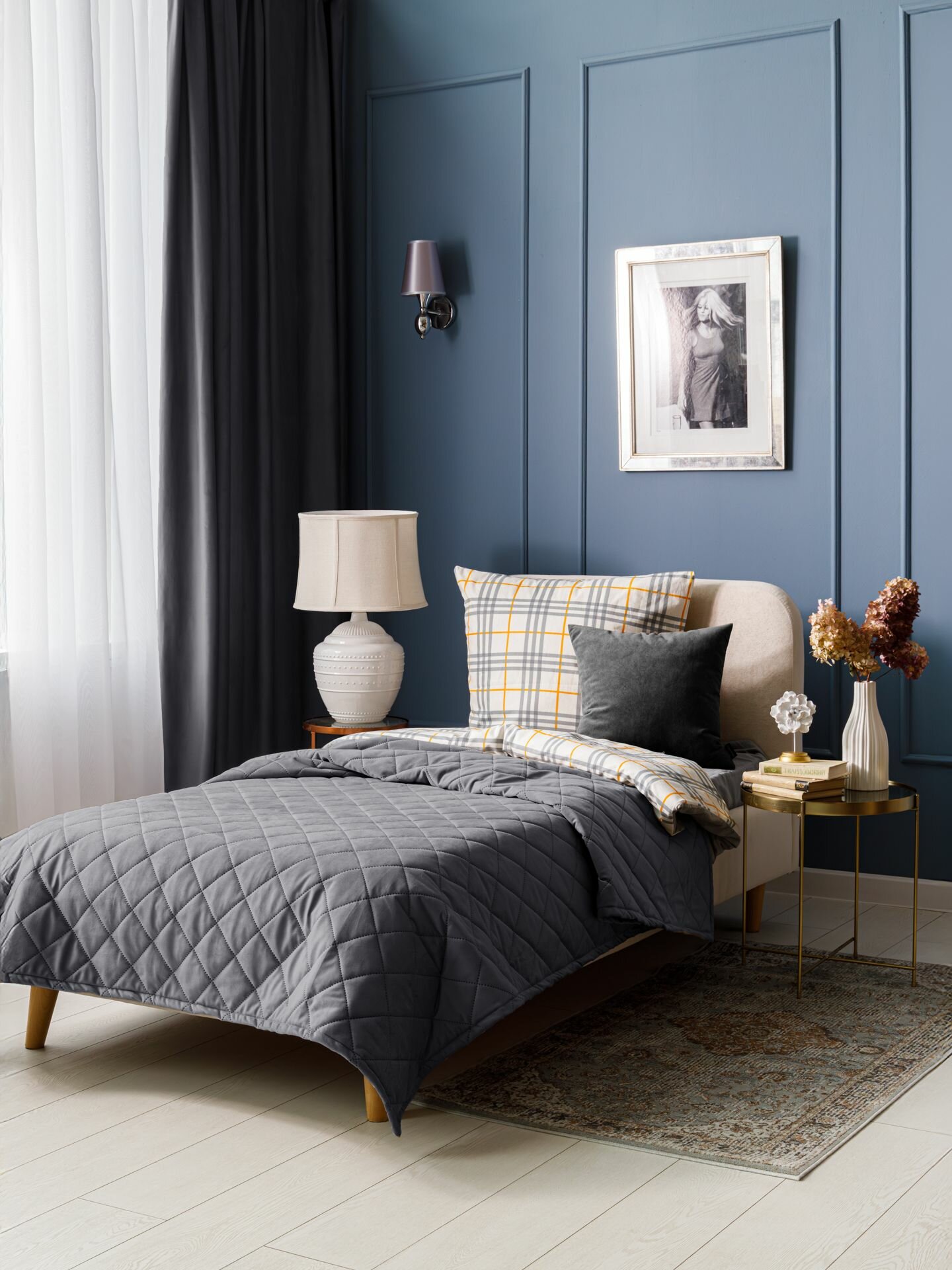 Покрывало на диван 150x210 см, стеганое, велюр LANA MONACO DENIM