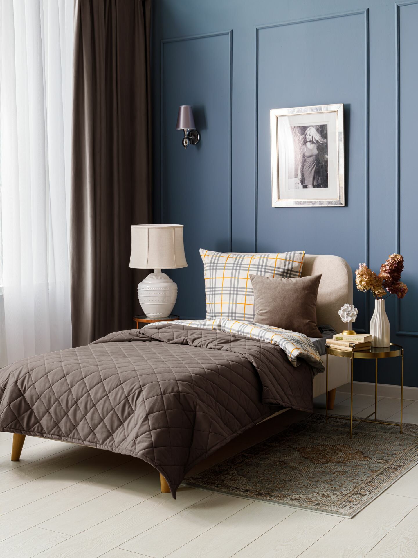 Покрывало на диван 150x210 см, стеганое, велюр LANA MONACO DENIM