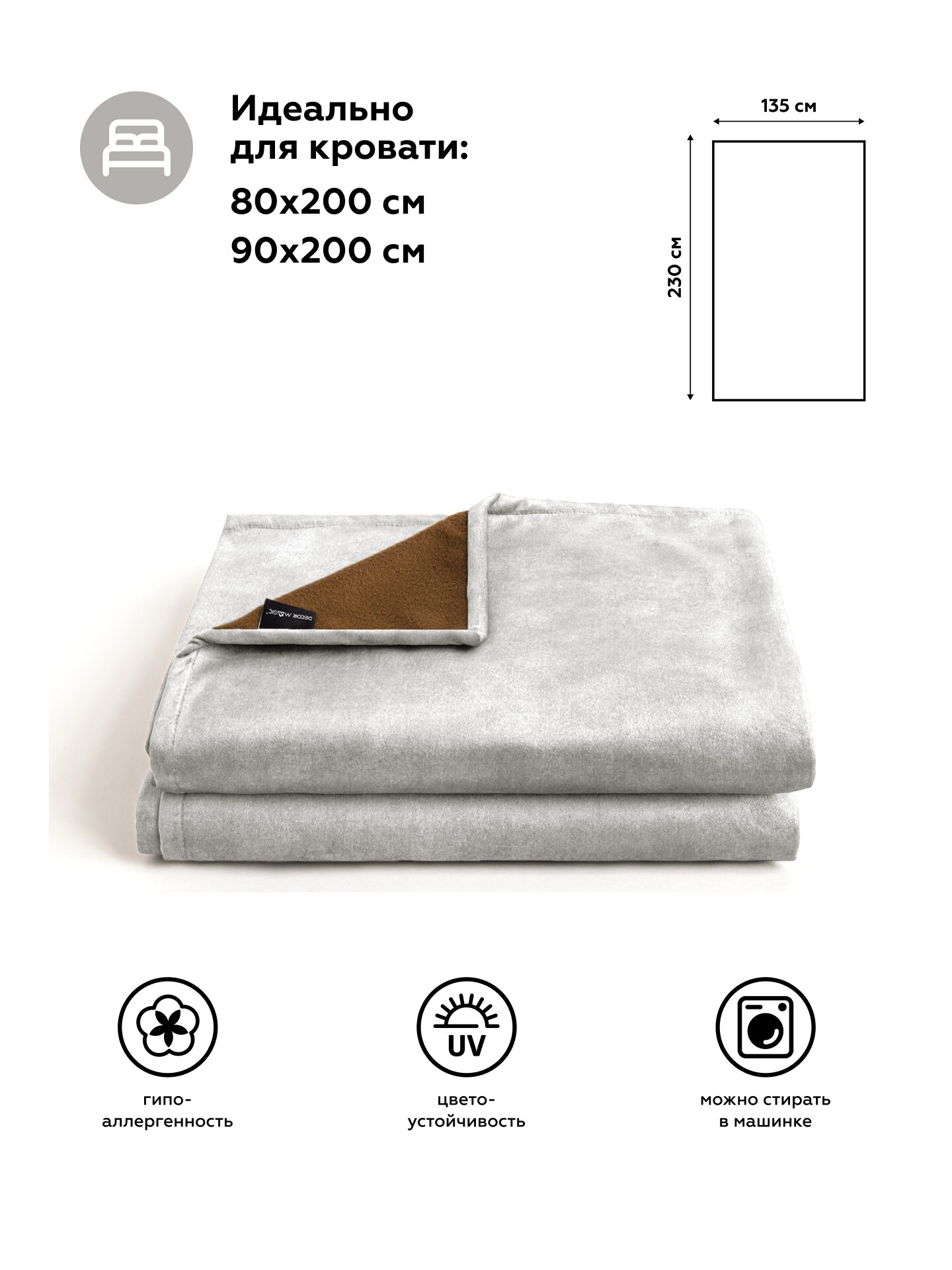 Покрывало на диван 135x230 см, велюр MONO GRETA GREY