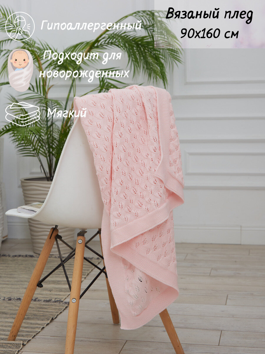 Плед-покрывало вязаный AlmaForHome July 160х90 см. светло-розовый интересное: