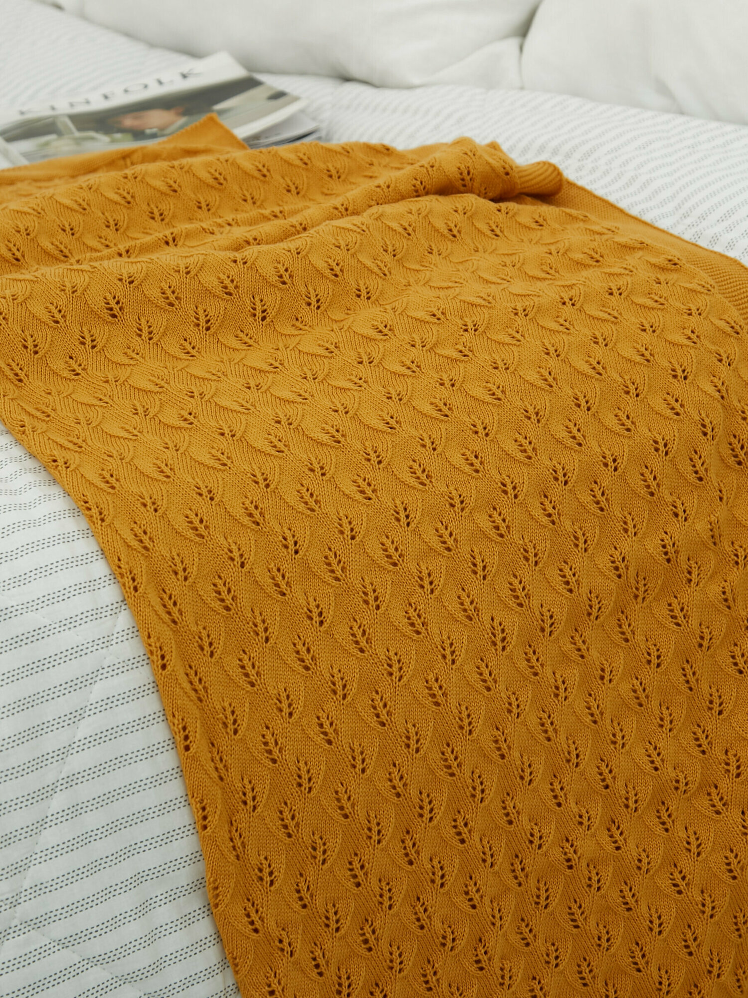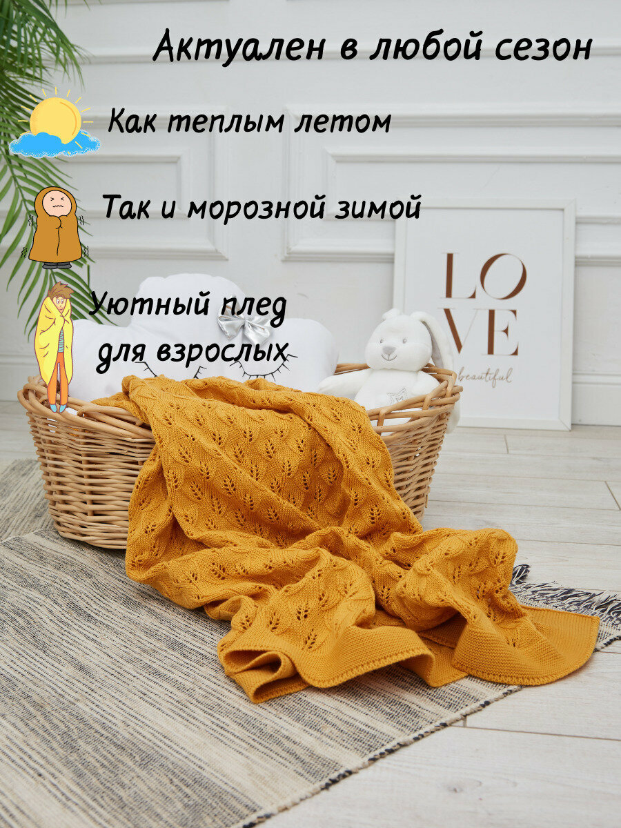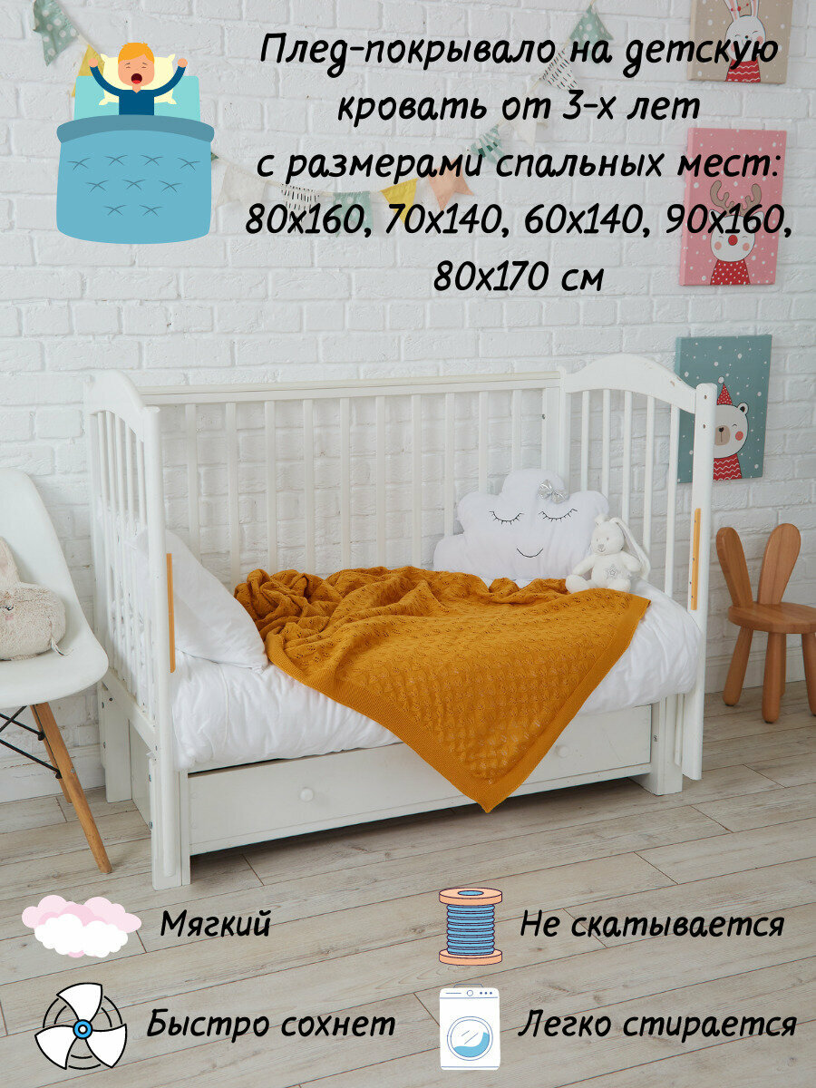 Плед-покрывало вязаный хлопковый на односпальную кровать детский , покрывало вязаное AlmaForHome July 160х90 см /горчичный интересное: