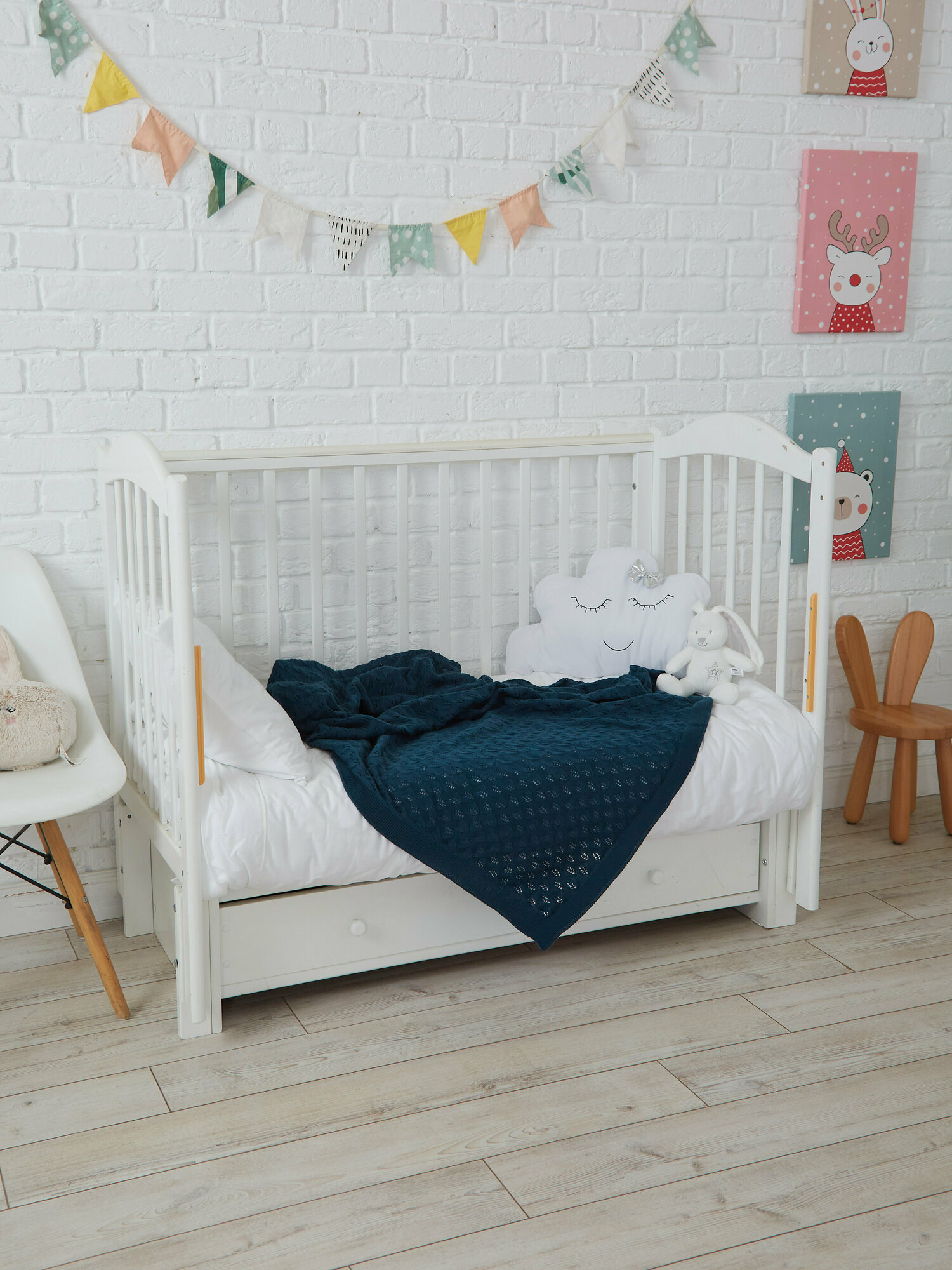 Купить Плед-покрывало вязаный хлопковый на односпальную кровать детский , покрывало вязаное AlmaForHome July 160х90 см /темно-синий