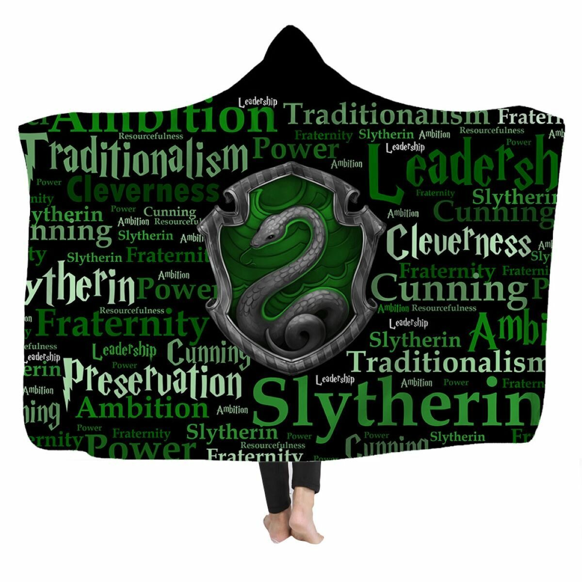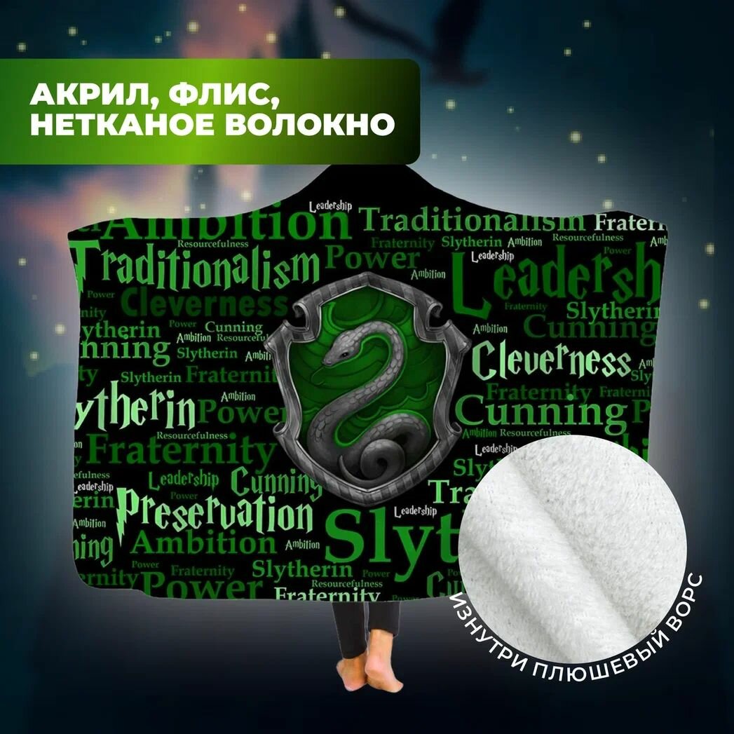 Плед Fantasy Earth "Слизерин", с капюшоном, фотопринт, двухсторонний, 1,5x1,3м