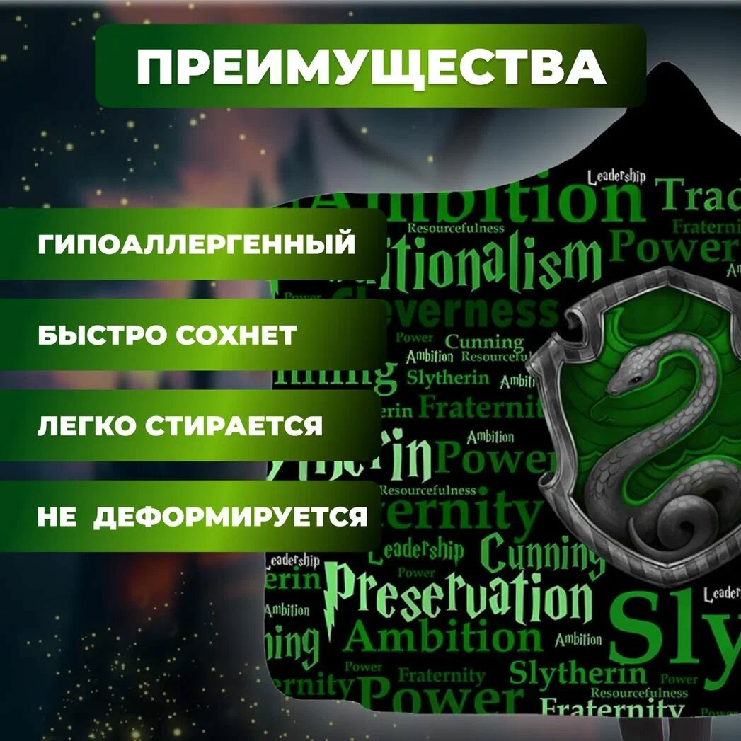 Плед-покрывало с капюшоном с символикой факультета Слизерин 1,5х1,3 м. интересное: