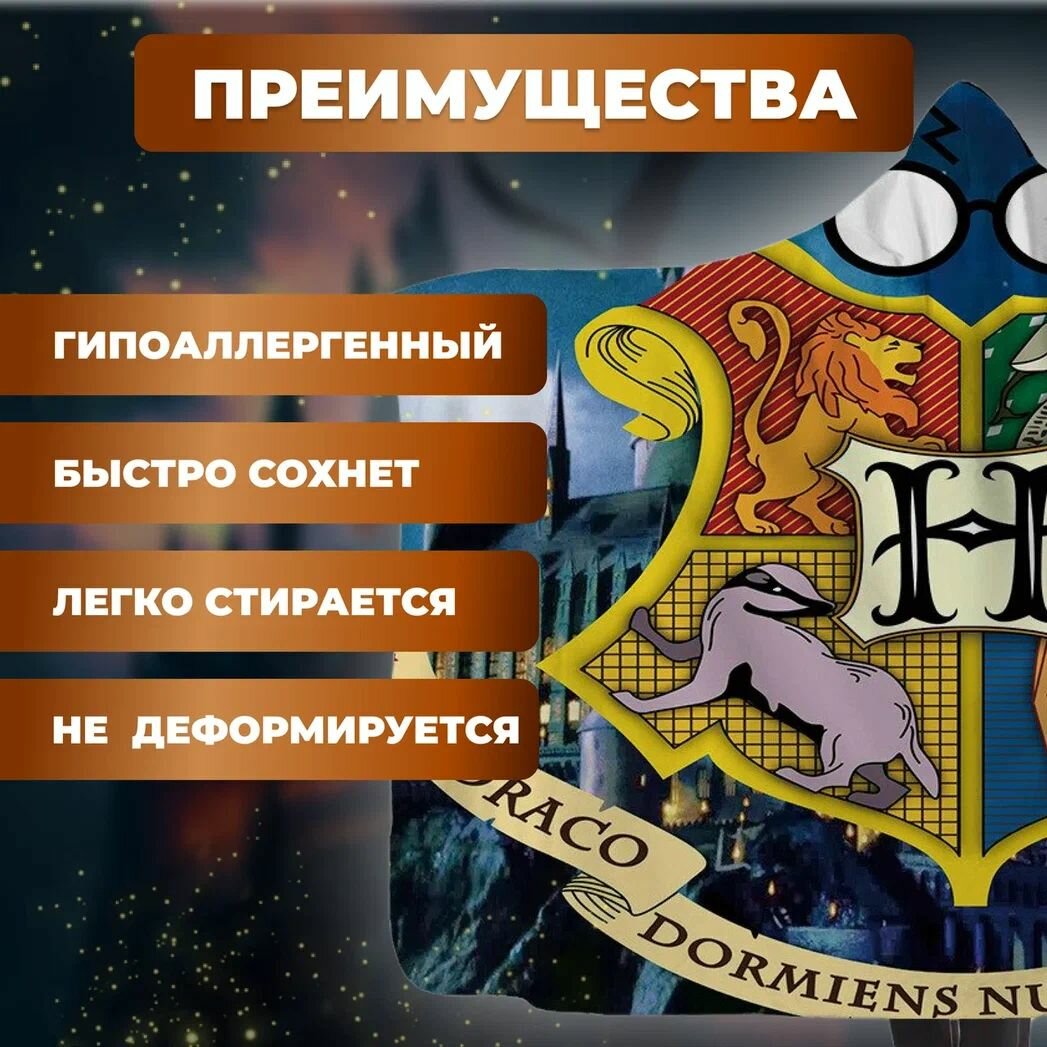 Плед-покрывало с капюшоном с принтом герба Хогвартс с 1,5х1,3 м. интересное: