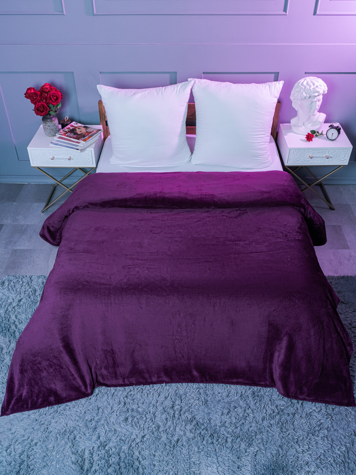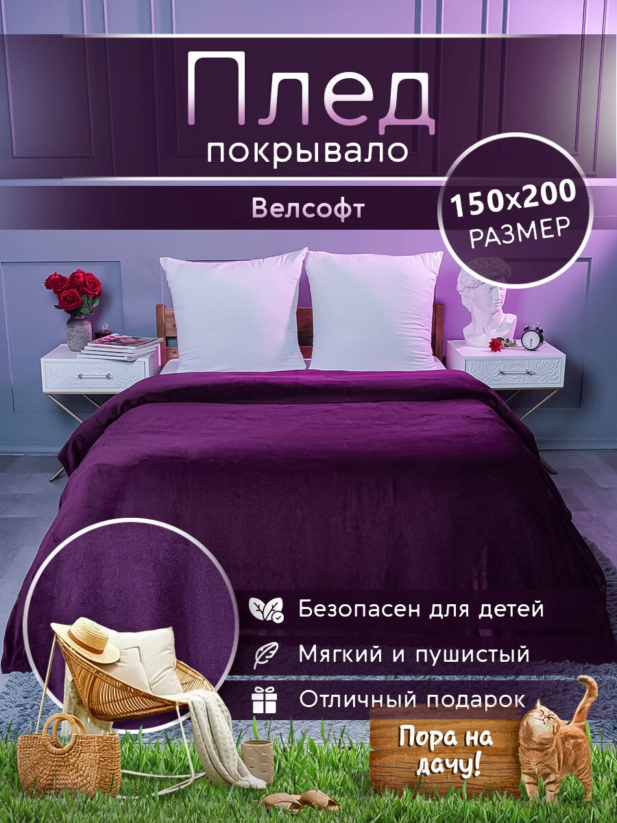 Купить Плед 150х200 LOVEBERRY из велсофта на кровать, слива, подарок маме