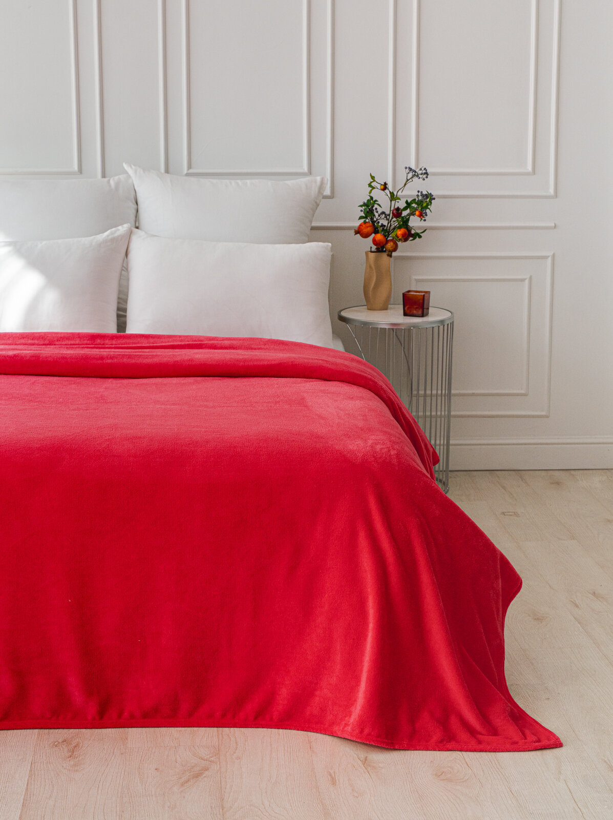 Плед покрывало 200х220 LOVEBERRY из велсофта, Евро, однотонный, коралловый