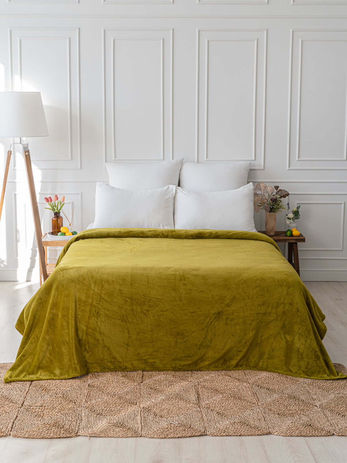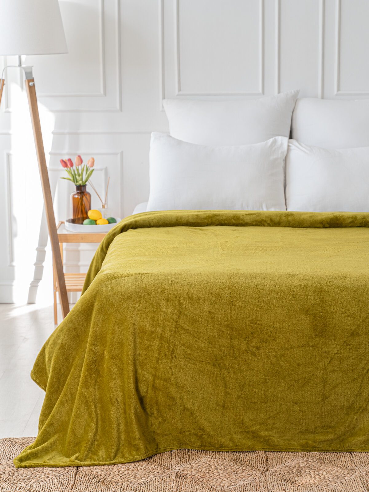 Плед покрывало 240х200 LOVEBERRY, Евро-макси из велсофта, однотонный, белый