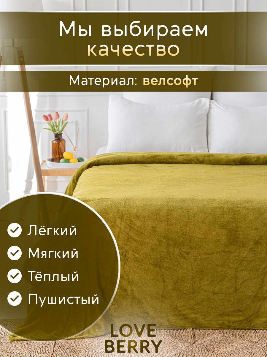 Плед покрывало 240х200 LOVEBERRY из велсофта, Евро-макси, изумруд