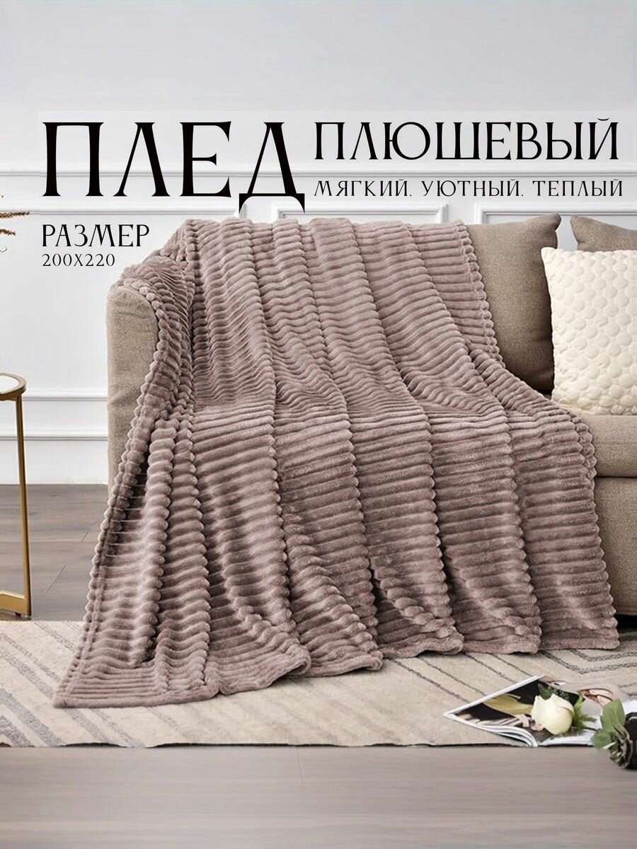 Купить Плед плюшевый 330 гр/м2, 200х220см, евро, какао, мягкий велсофт, МатрасОптТорг