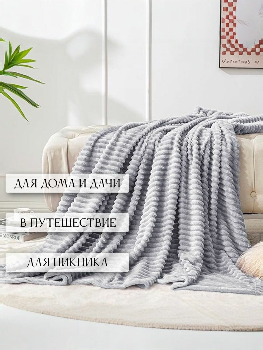 Плед плюшевый 330 гр/м2, 180х200см, 2-спальный, светло-серый, мягкий велсофт, МатрасОптТорг