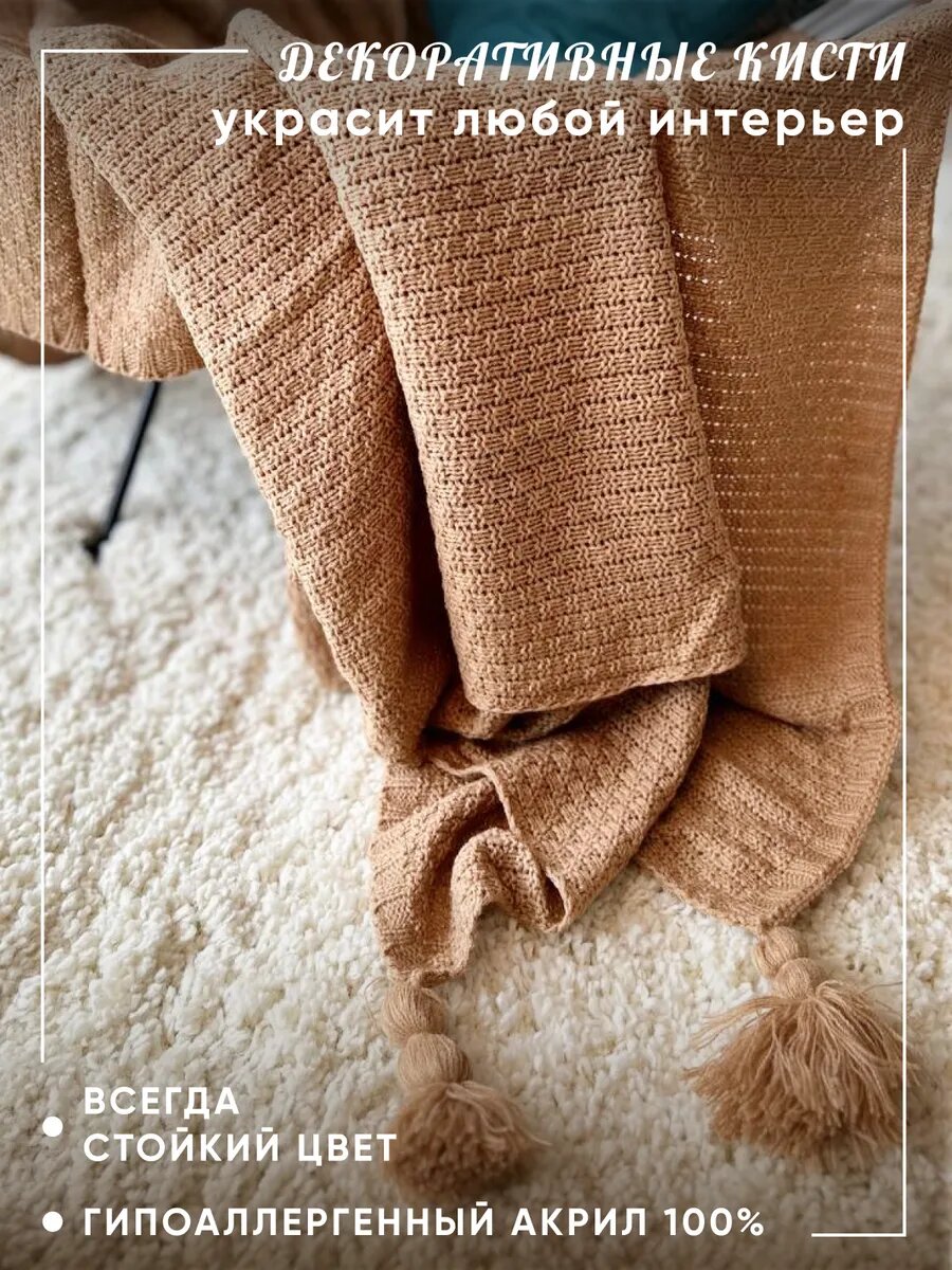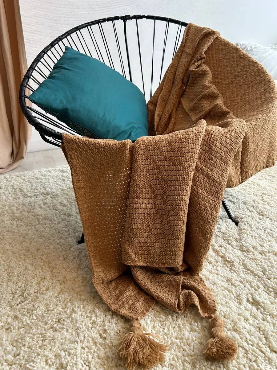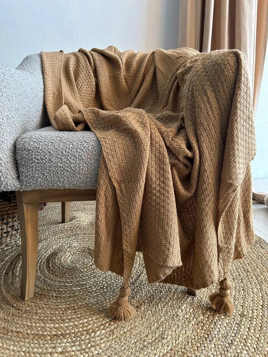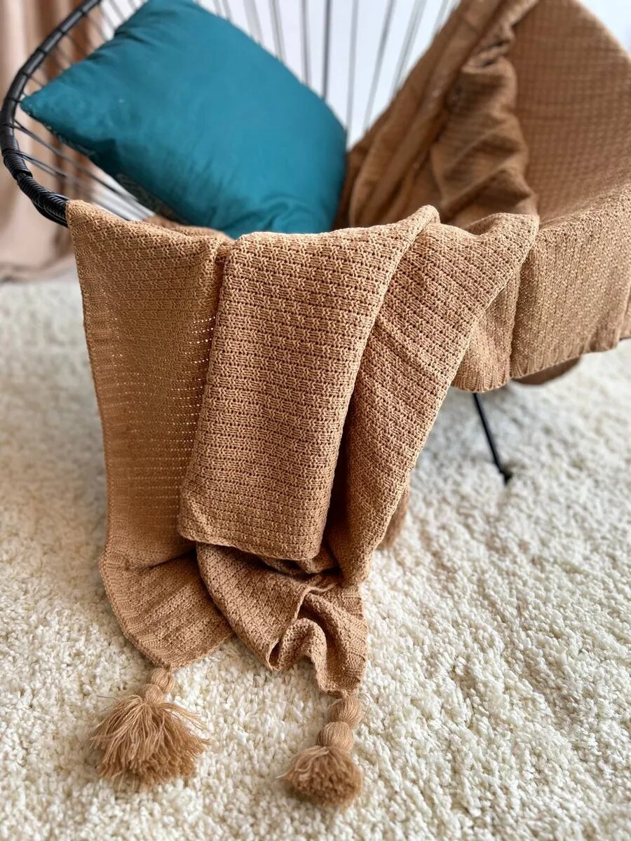 Плед Evium на диван вязаный 130х170 см с кисточками, скандинавский стиль интересное: