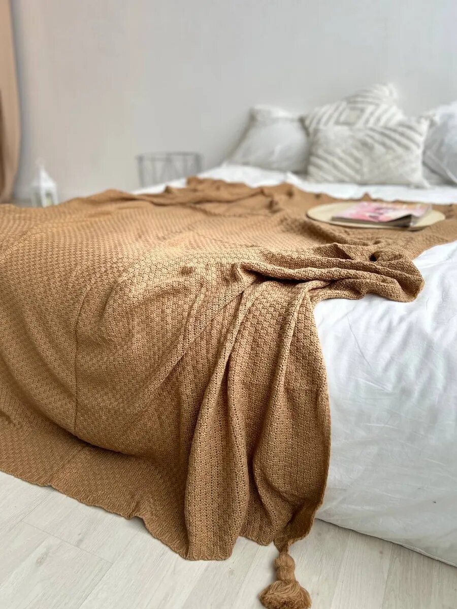 Купить Плед Evium на диван вязаный 130х170 см с кисточками, скандинавский стиль
