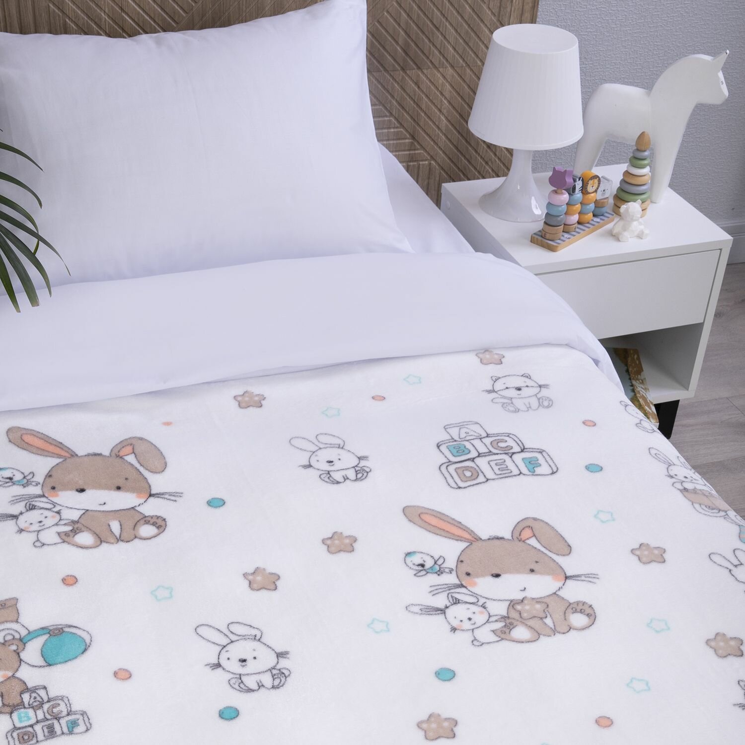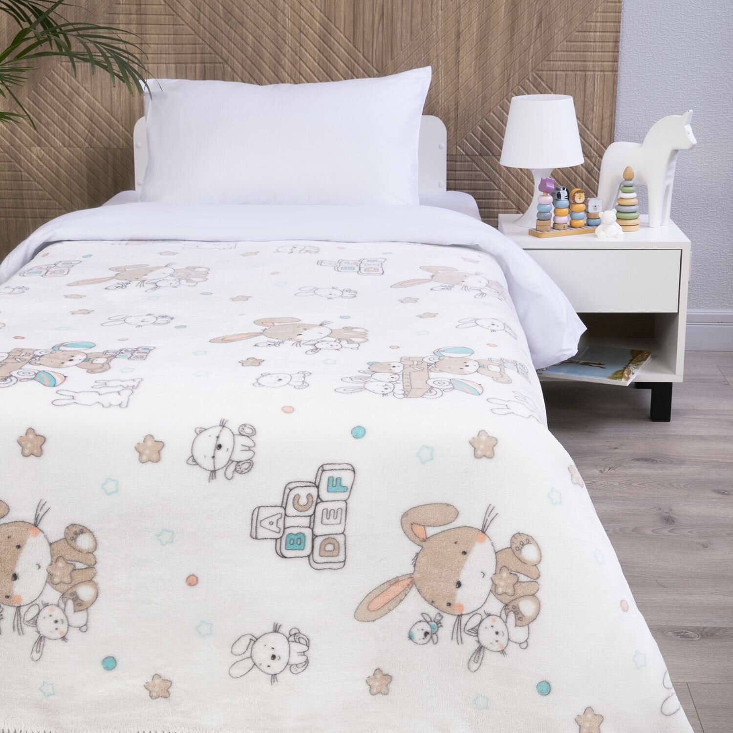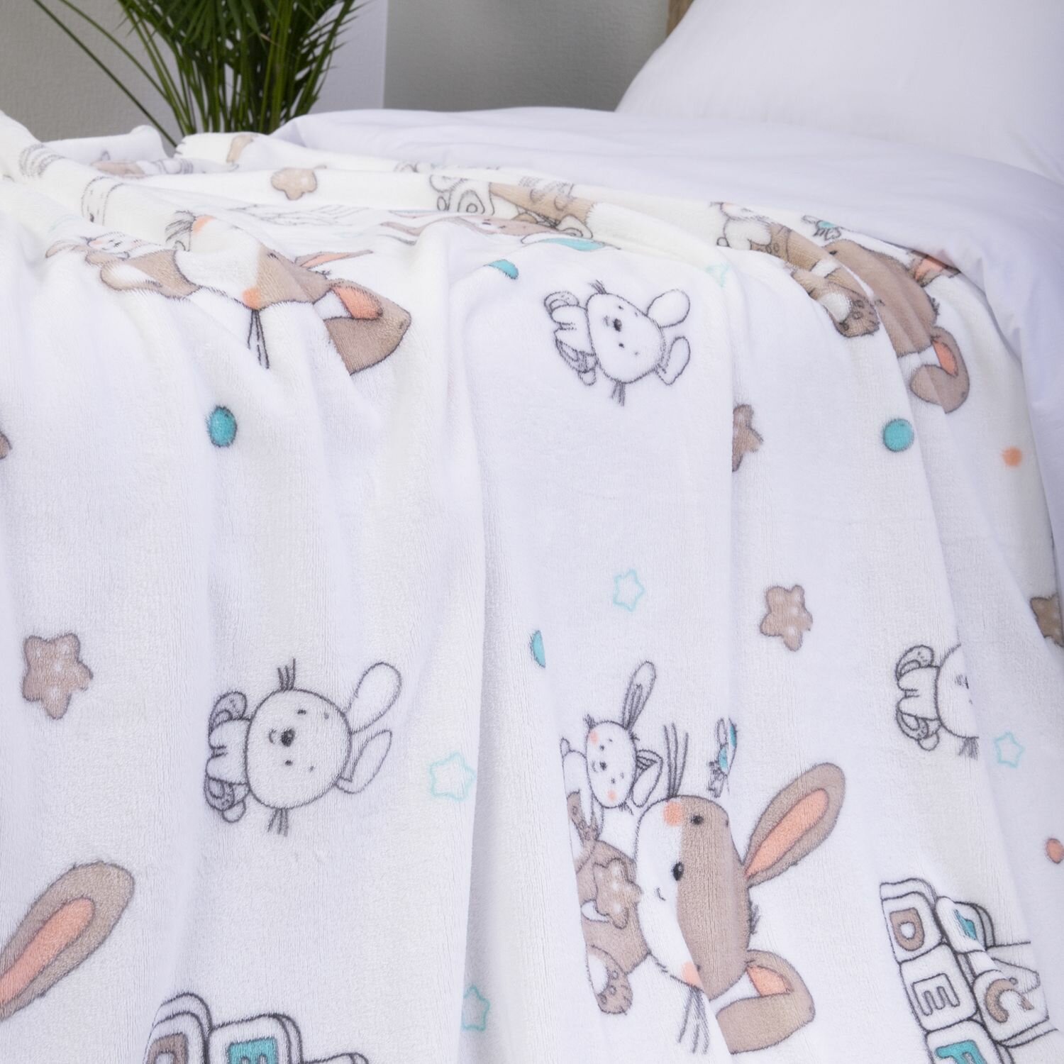 Плед 150х200 см детский, Плюшевый и теплый "Плюшевые зайки"