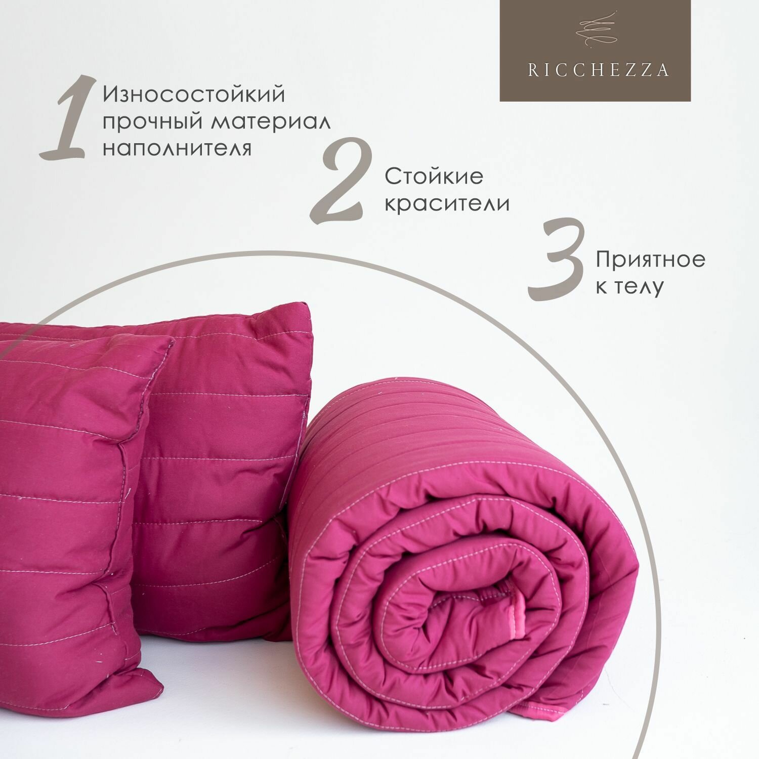 Купить Покрывало Ricchezza на кровать 1.5 спальное 170х220 см для спальной, гостиной, детской/стеганый плед на диван однотонный, мягкий, легкий, тонкий, для дома и дачи/цвет малиновый