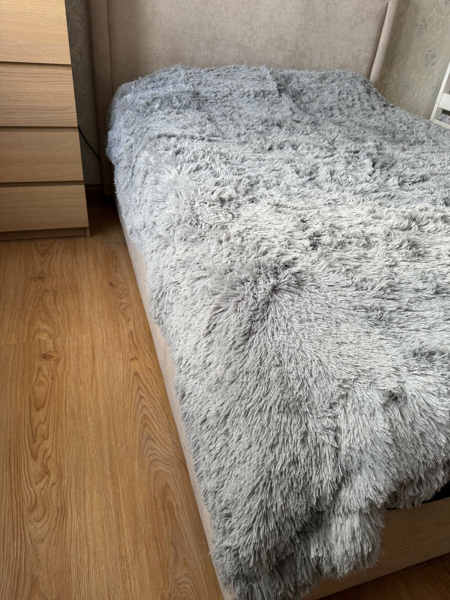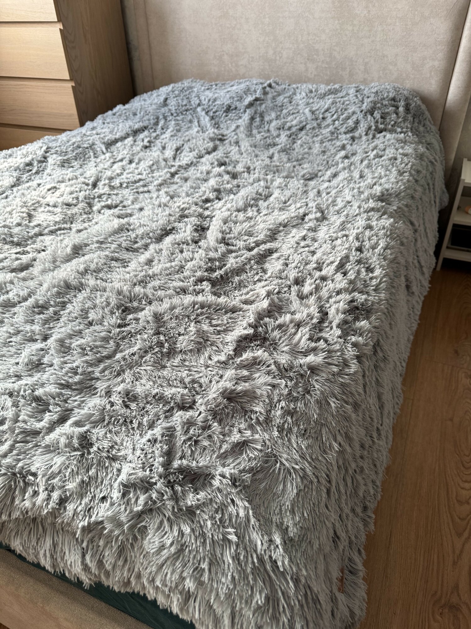 Плед-покрывало Blumarine "Мех-травка" мягкий на кровать, серый интересное: