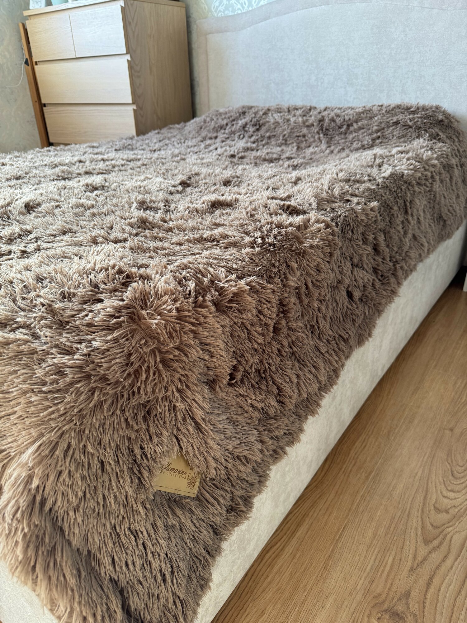 Плед-покрывало Blumarine "Мех-травка" мягкий на кровать, капучино интересное: