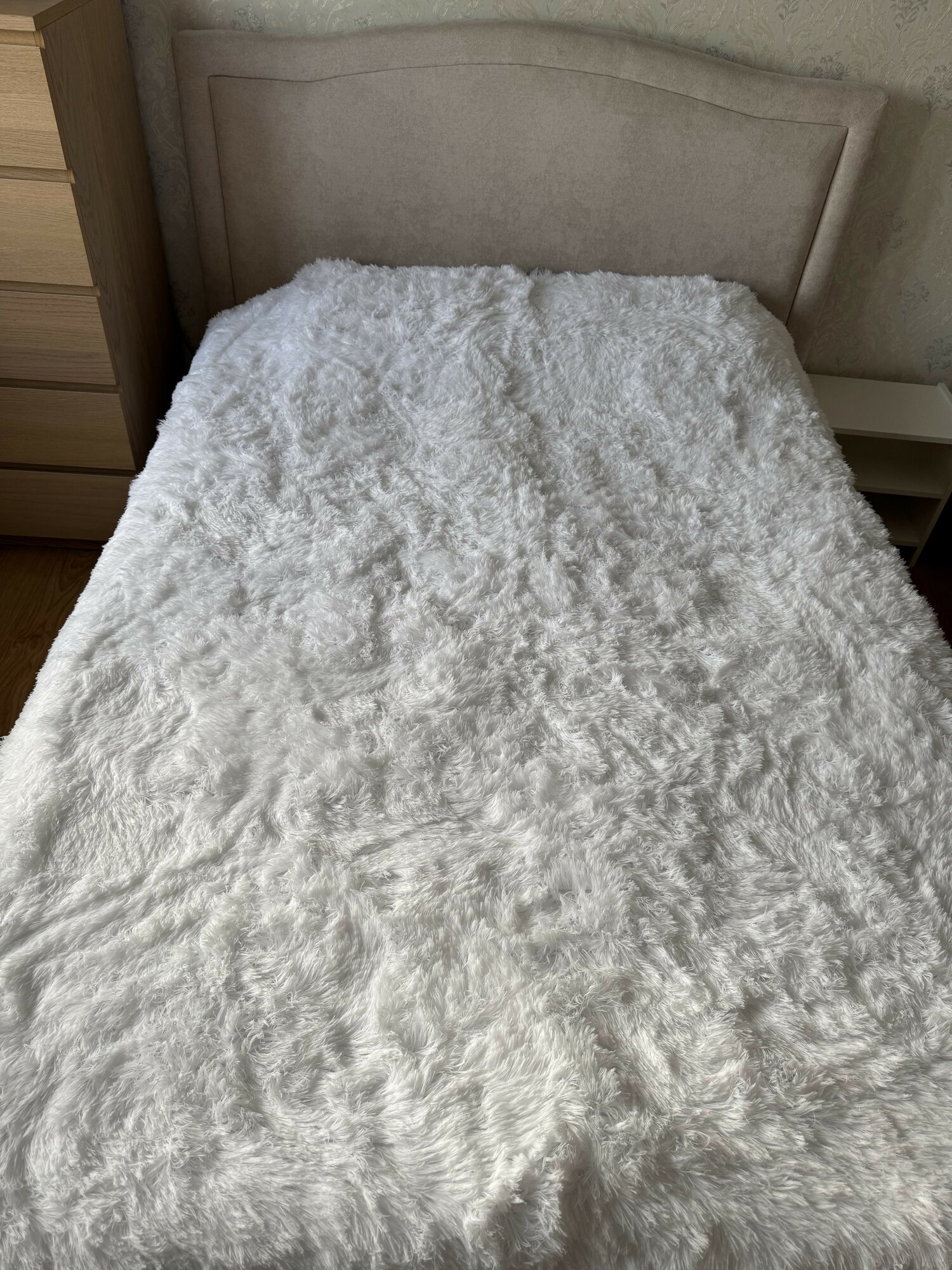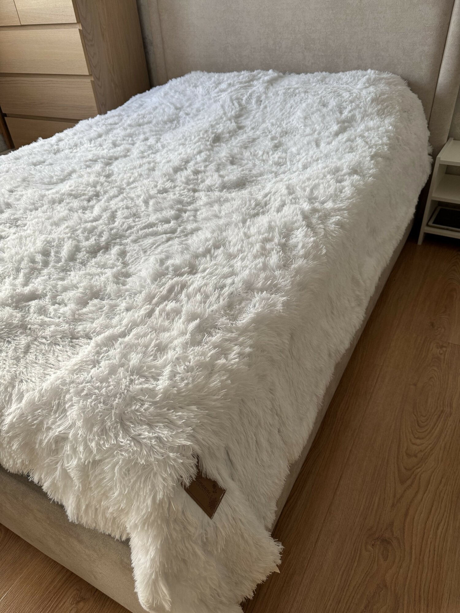 Плед-покрывало Blumarine "Мех-травка" мягкий на кровать, белый интересное: