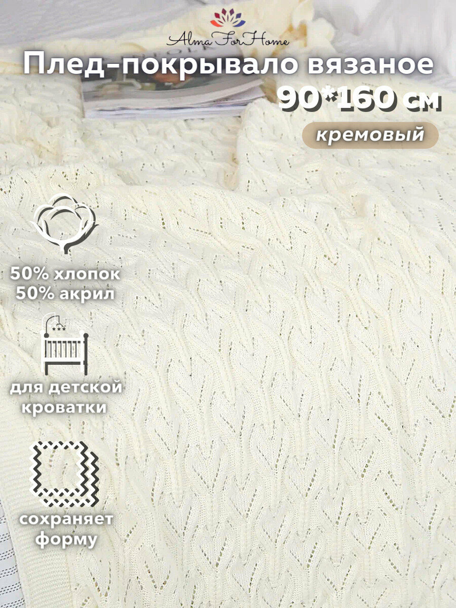 СохранитьПлед-покрывало вязаный хлопковый на односпальную кровать детский , покрывало вязаное AlmaForHome 90x160см / сердечки / молочный интересное:
