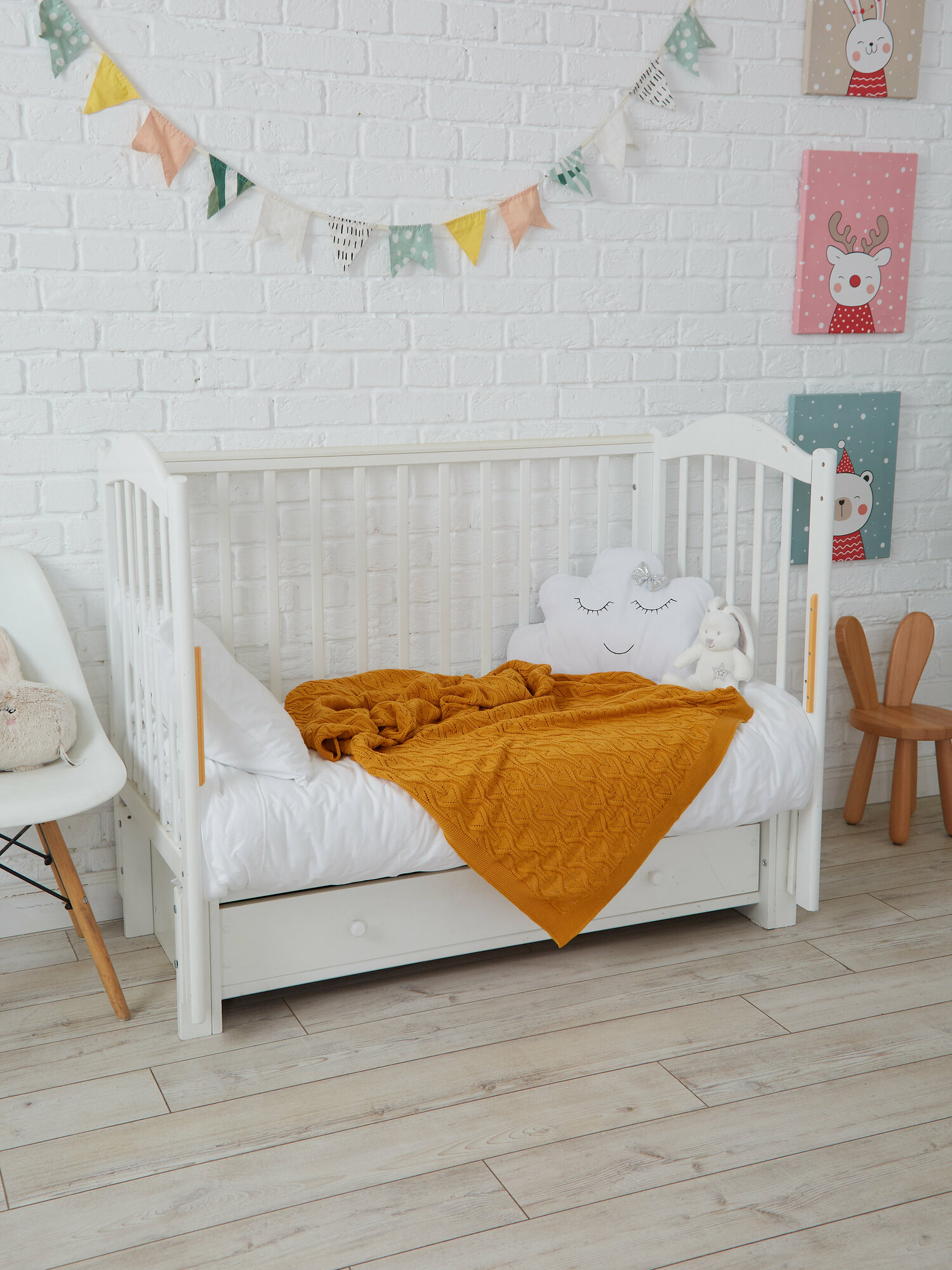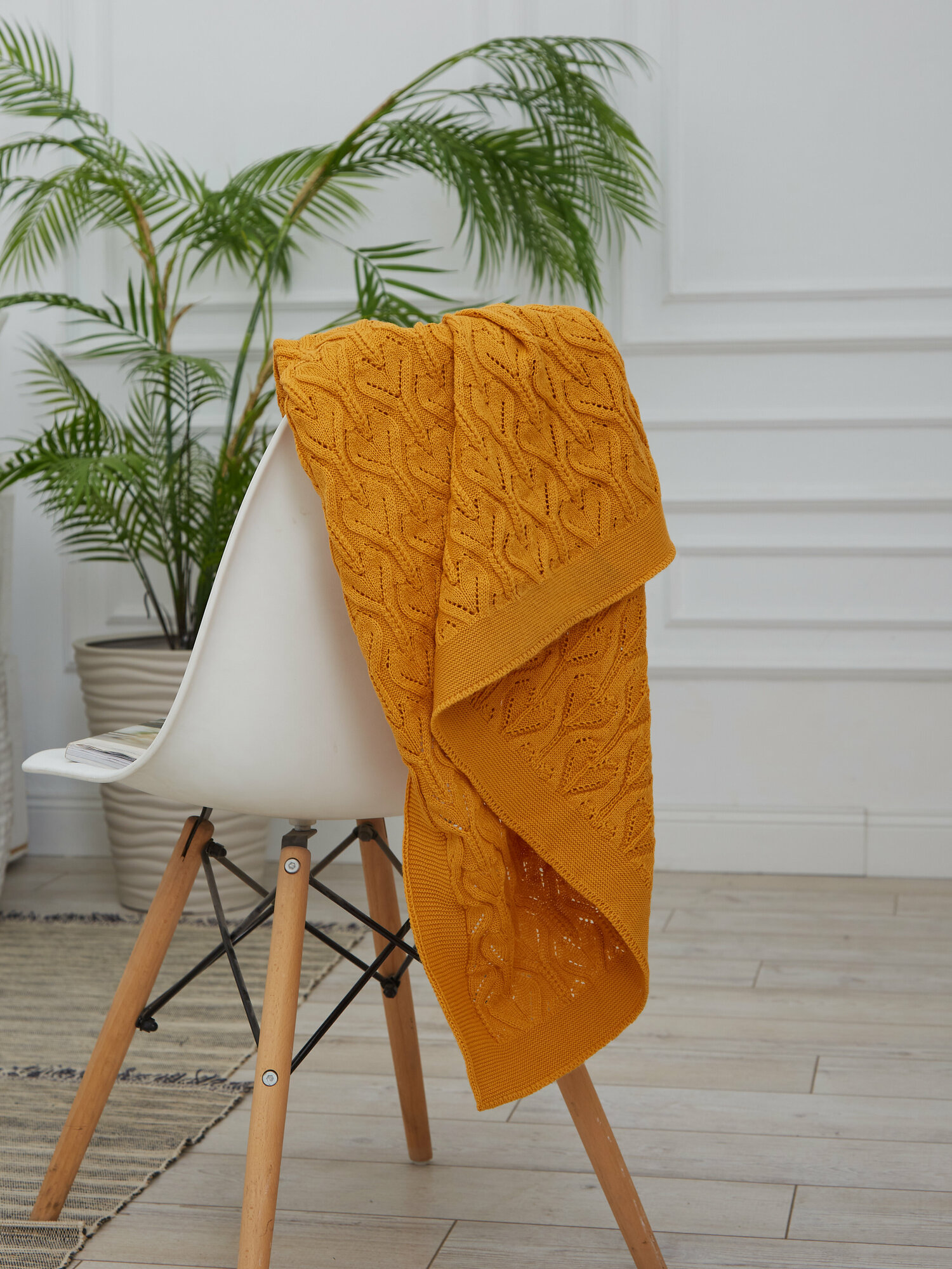 СохранитьПлед-покрывало вязаный хлопковый на односпальную кровать детский , покрывало вязаное AlmaForHome 90x160см / сердечки / горчичный интересное:
