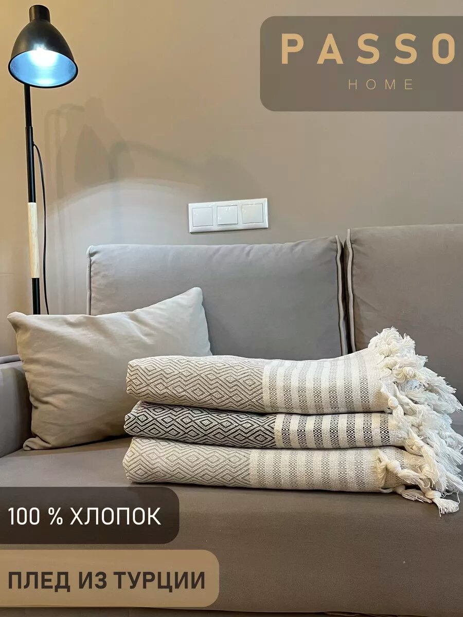 Плед PASSO HOME, хлопок, 170x300 см, двухсторонний, для дивана и кровати