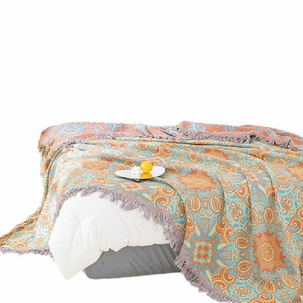 Плед-покрывало YENLN, хлопок 100%, 200x230 см, бахрома, восточный узор