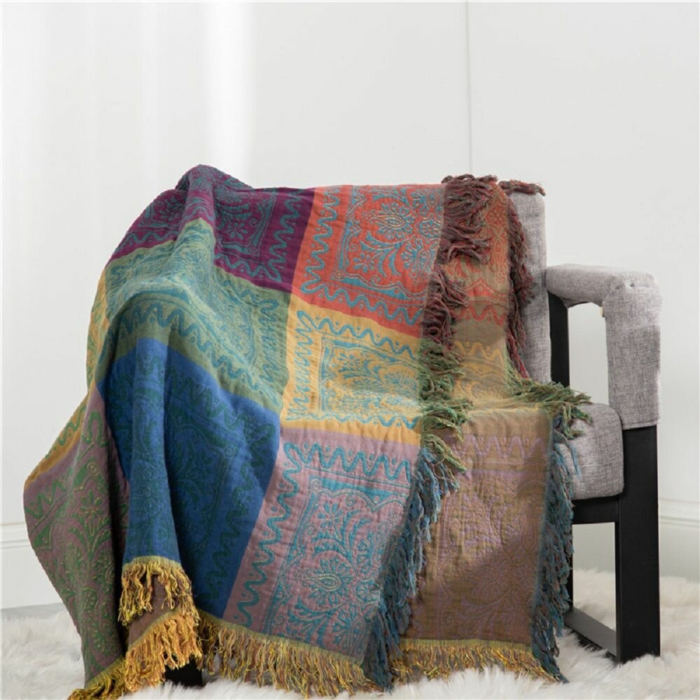 Плед - покрывало YENLN, муслин, 200x230 см, 100% хлопок, двухсторонний с бахромой