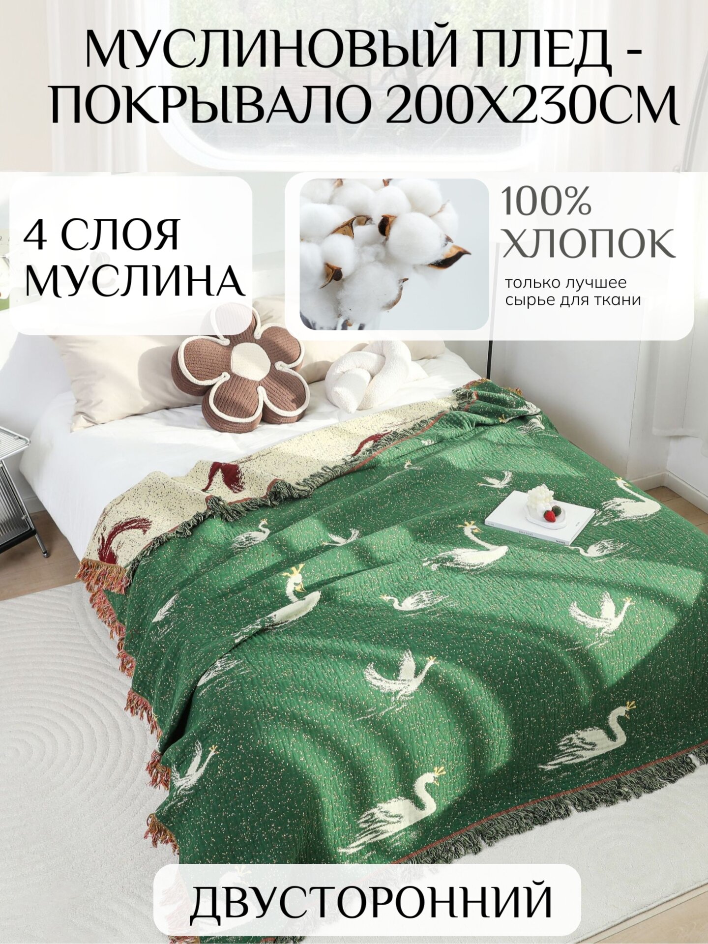 Муслиновое покрывало - плед YENLN, 2-спальное, 100% хлопок, 200x230 см, двустороннее