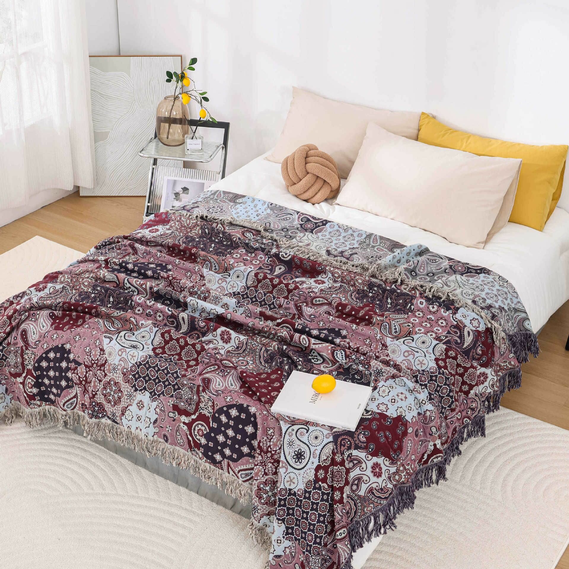 Плед-покрывало YENLN, хлопок 100%, 200x230 см, бахрома, восточный узор