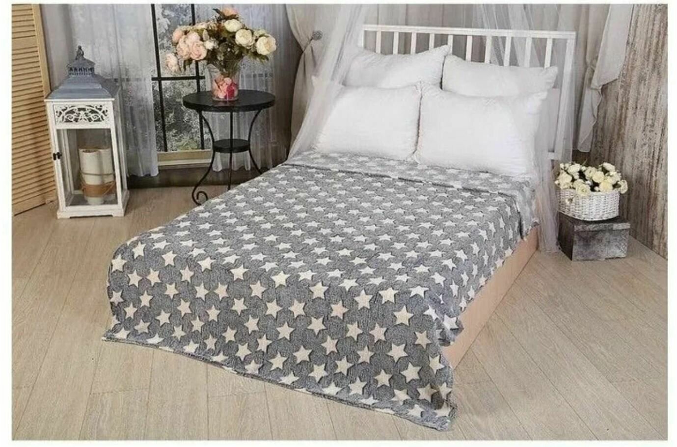 СохранитьПлед на кровать диван 180 на 200 см - Серый Звездочки Флисовый интересное: